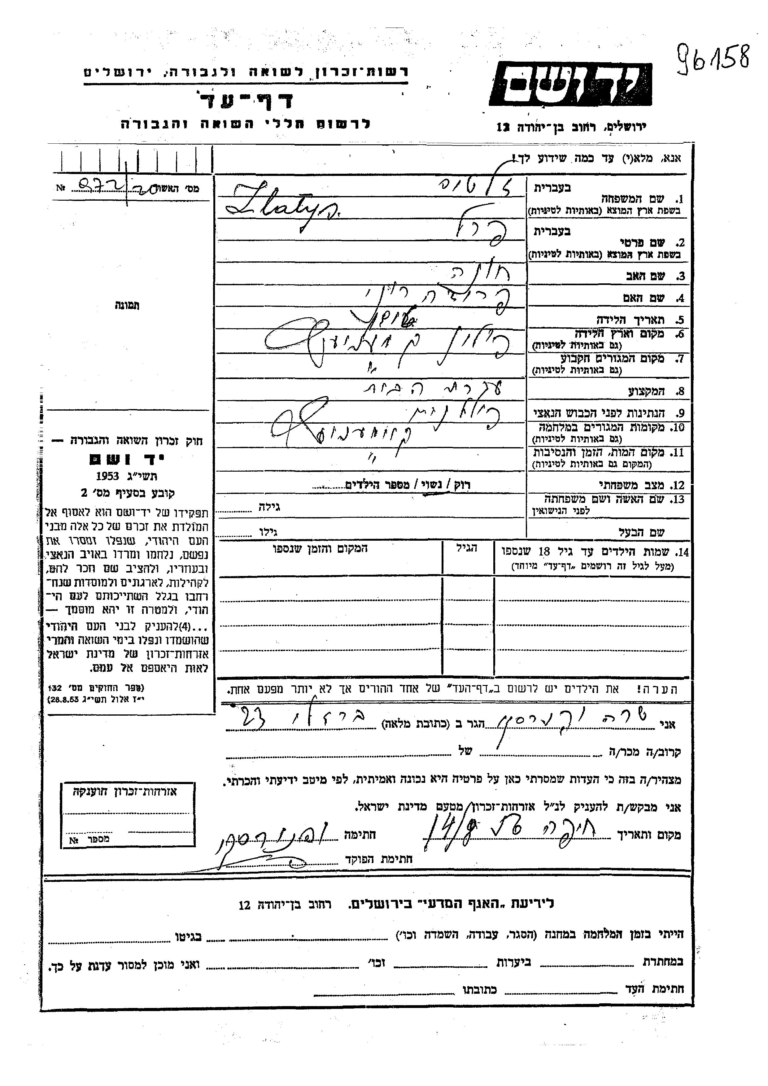 Perel Zlatys wurde im Jahr 1916 in Kamieniec Litewski, Polen geboren. Sie war die Tochter von Khona und Frida Roni. Sie war Hausfrau und Verheiratet. Vor dem Zweiten Weltkrieg lebte sie in Kamieniec Litewski, Polen. Während des Krieges war sie in Kamieniec Litewski, Polen.