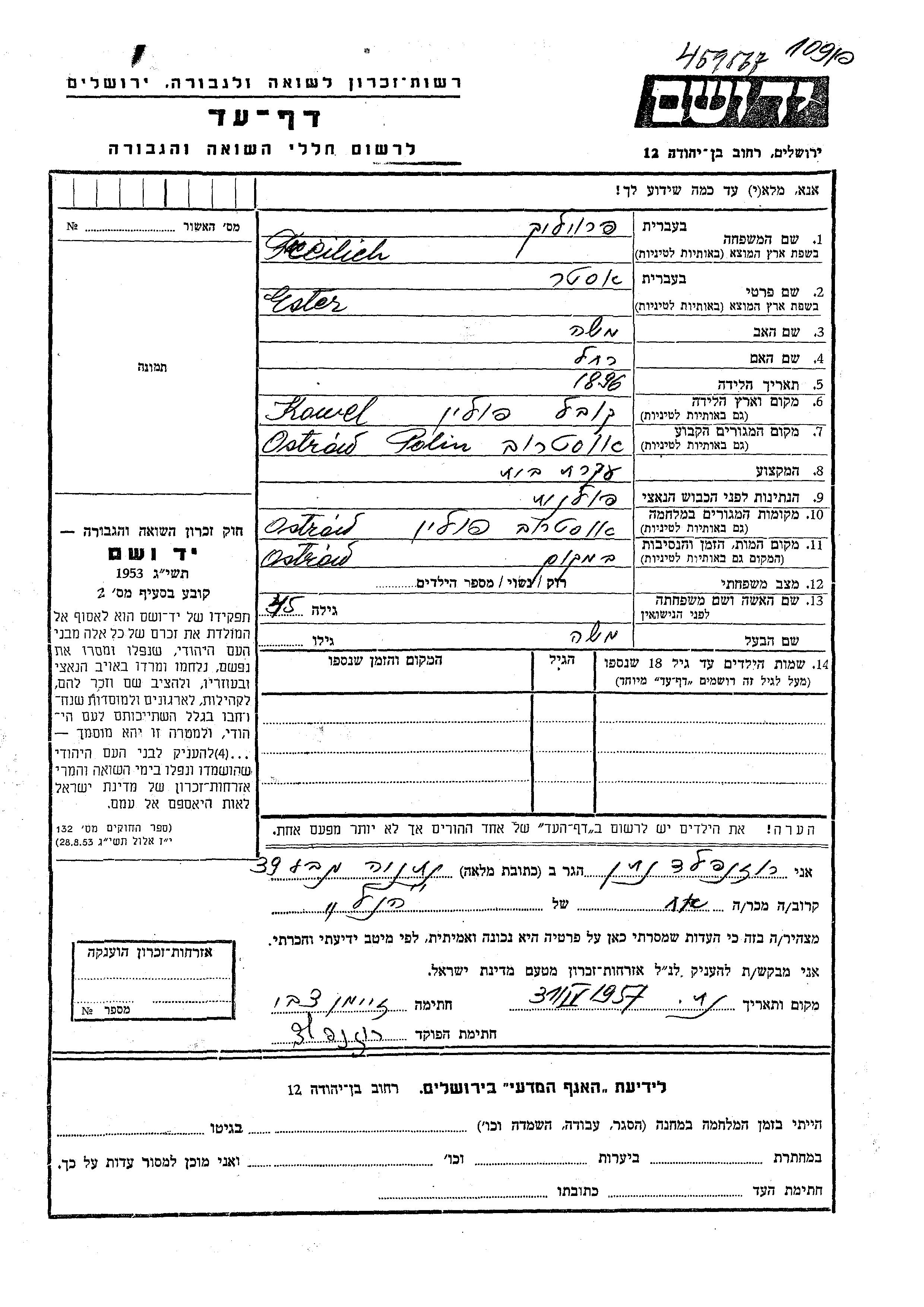 Ester Freilich wurde im Jahr 1896 in Kowel, Polen geboren. Sie war die Tochter von Moshe und Rakhel. Sie war Hausfrau. Vor dem Zweiten Weltkrieg lebte sie in Ostrow, Polen. Während des Krieges war sie in Ostrow, Polen.