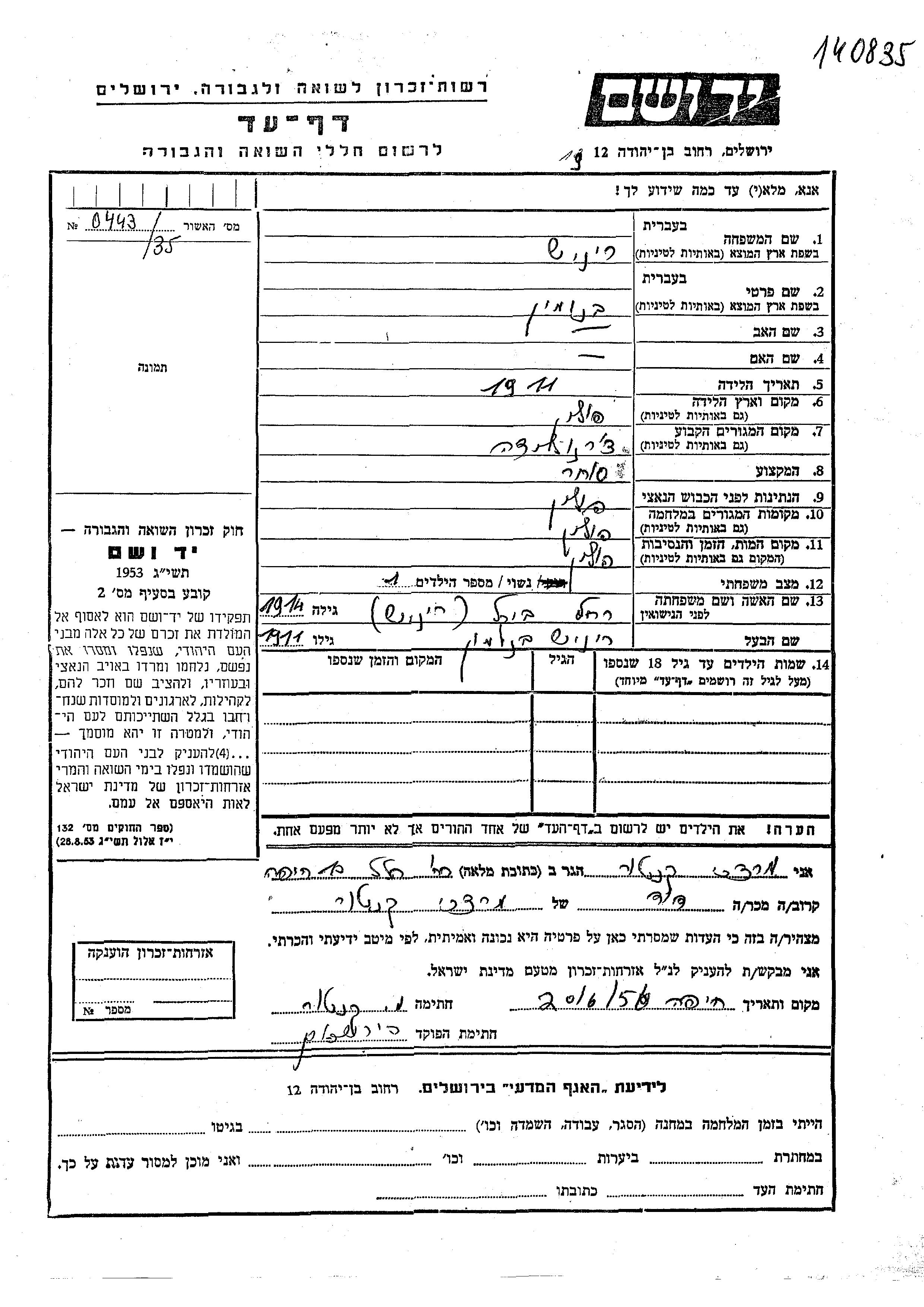 Beniamin Reinish wurde im Jahr 1911 in Polen geboren. Er war Kaufmann/-frau und mit Rakhel, geb. Bikel Verheiratet. Vor dem Zweiten Weltkrieg lebte er in Czernolica, Polen. Während des Krieges war er in Polen.