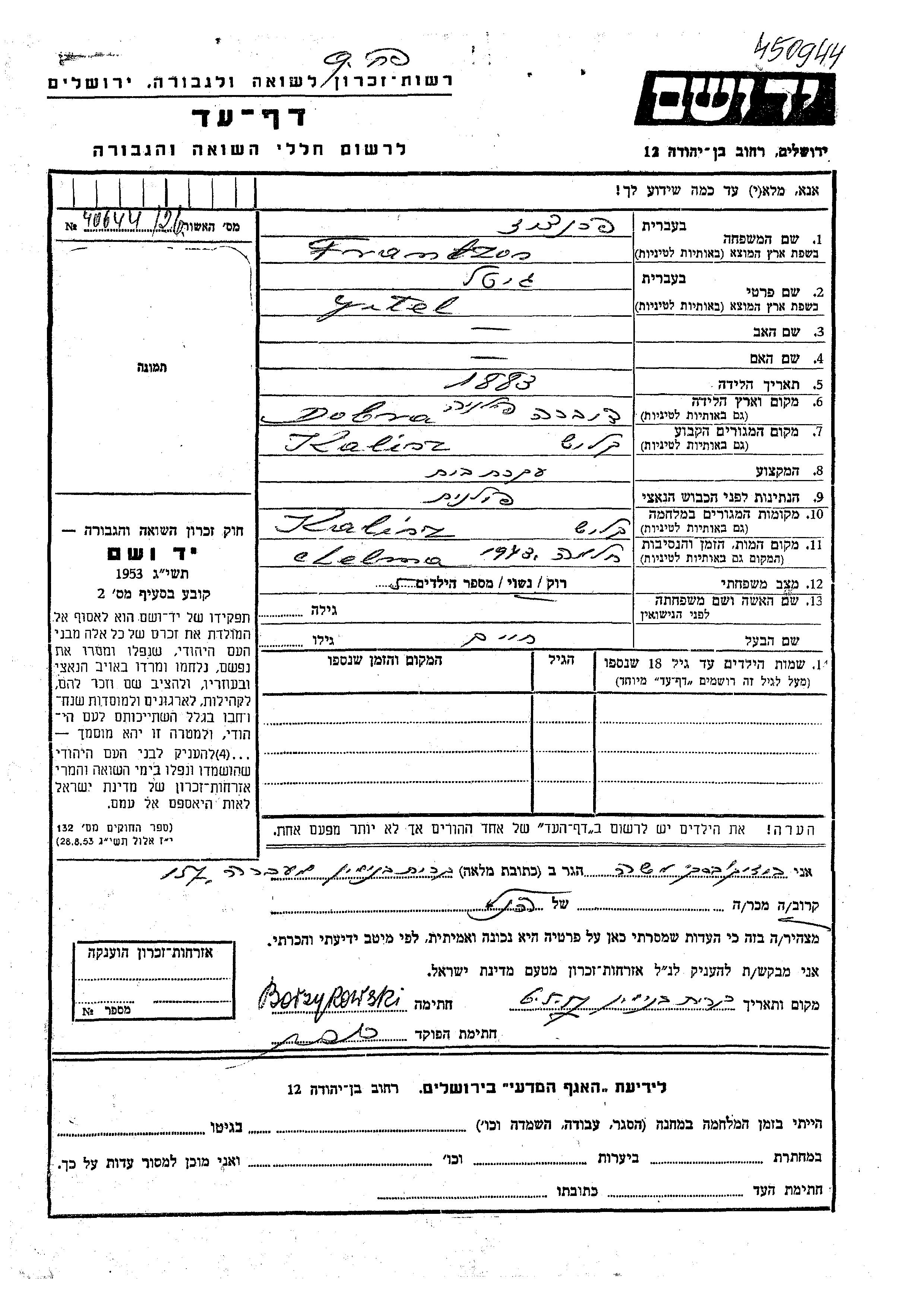 Gitel Frantzos wurde im Jahr 1883 in Dobra, Polen geboren. Sie war Hausfrau und mit Khaim Verheiratet. Vor dem Zweiten Weltkrieg lebte sie in Kalisz, Polen. Während des Krieges war sie in Kalisz, Polen.