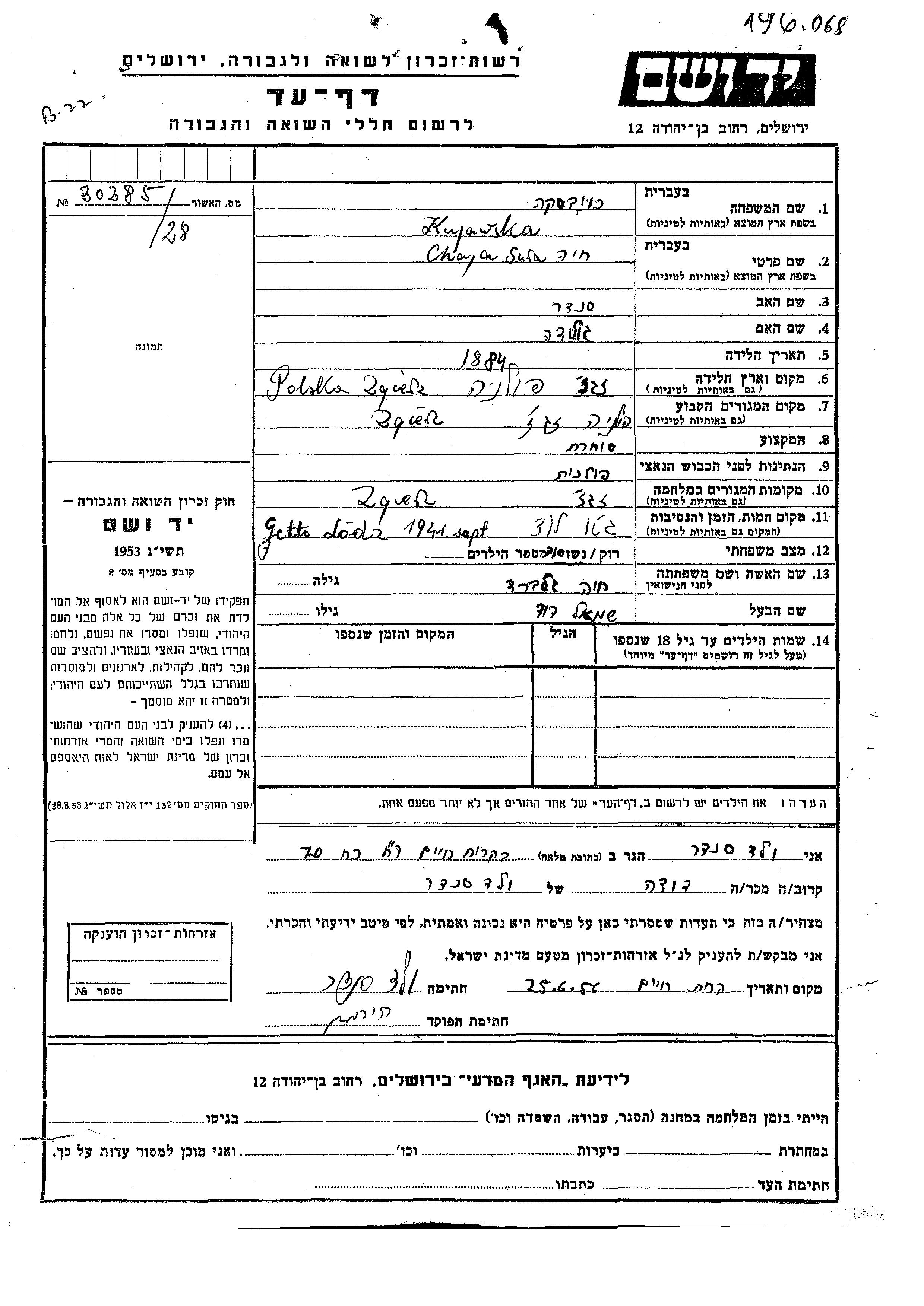 Chaja Sula Kujawska, geb. Gelbard wurde im Jahr 1884 in Zgierz, Polen geboren. Sie war die Tochter von Sender und Golda. Sie war Kaufmann/-frau und mit Shmuel David Verheiratet. Vor dem Zweiten Weltkrieg lebte sie in Zgierz, Polen. Während des Krieges war sie in Zgierz, Polen.