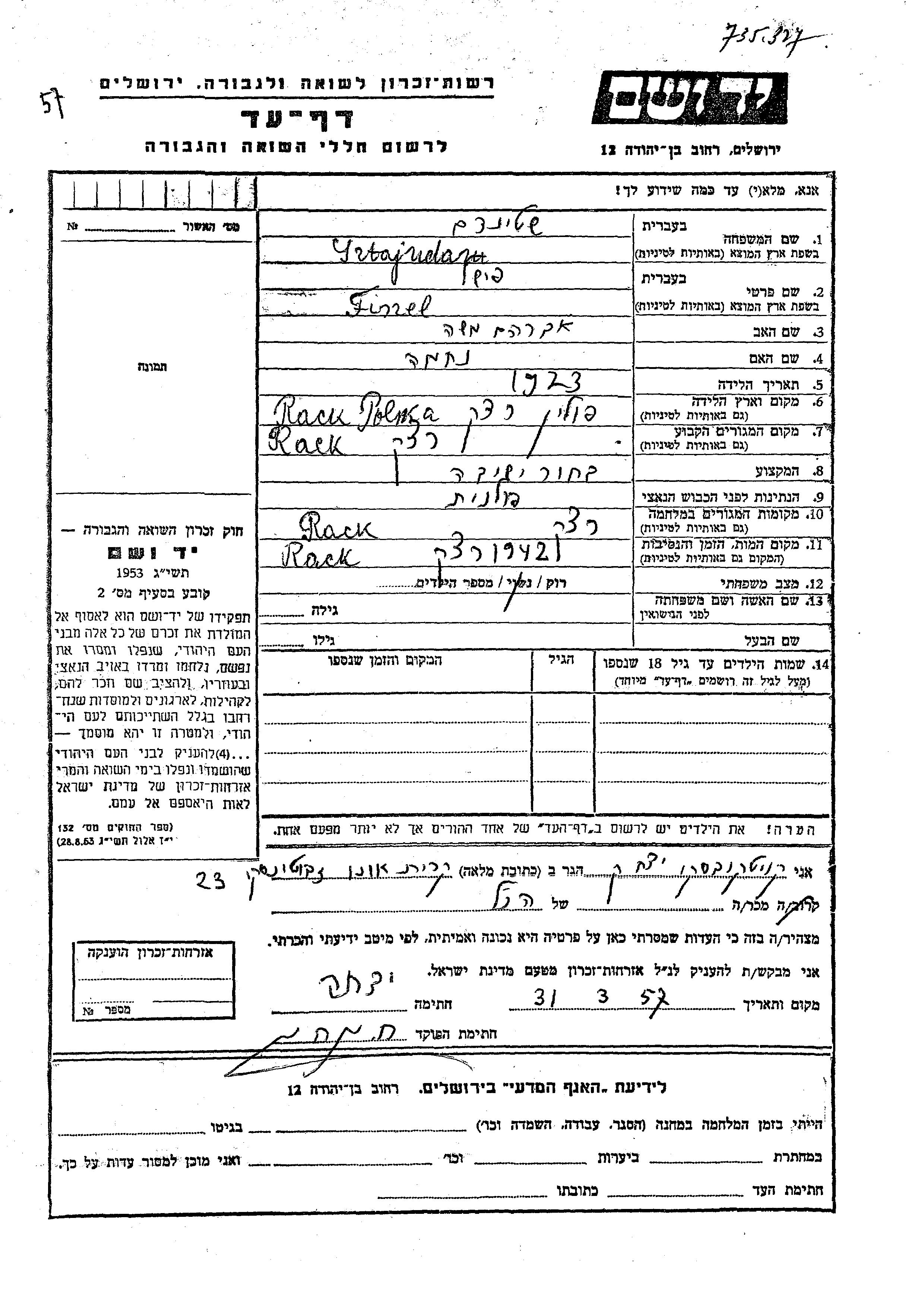 Fiszel wurde in der Schoah ermordet. Todesort: Rack, Polen im Jahr 1942.