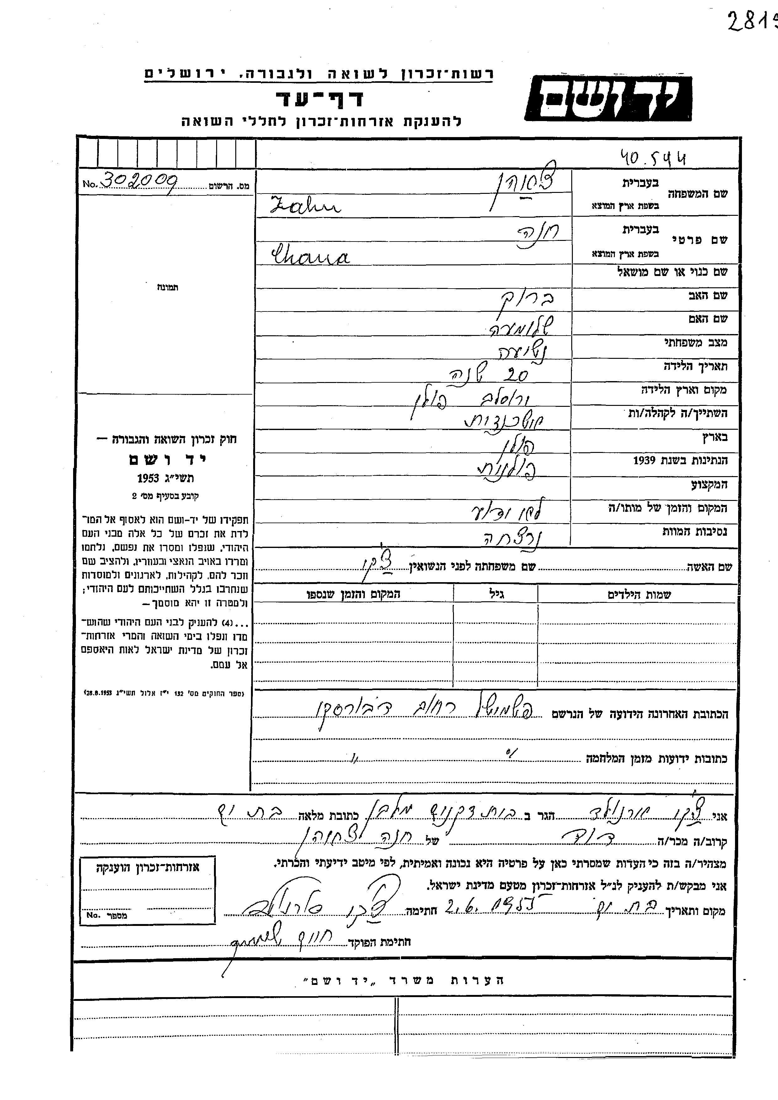 Chana Zahn, geb. Czakó wurde in Jeroslaw, Polen geboren. Sie war die Tochter von Barukh und Salomea. Vor dem Zweiten Weltkrieg lebte sie in Polen. Während des Krieges war sie in Przemysl, Polen.