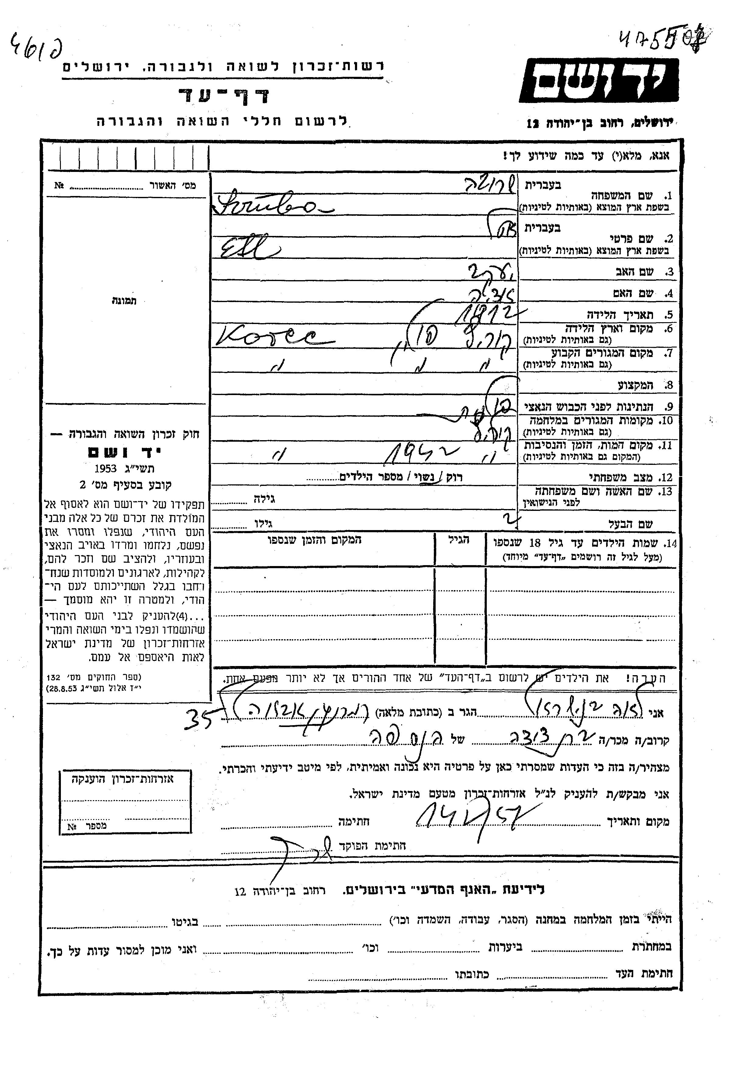Etl Szruba wurde im Jahr 1912 in Korec, Polen geboren. Sie war die Tochter von Yaakov und Edia. Sie war Verheiratet. Vor dem Zweiten Weltkrieg lebte sie in Korec, Polen. Während des Krieges war sie in Korec, Polen.