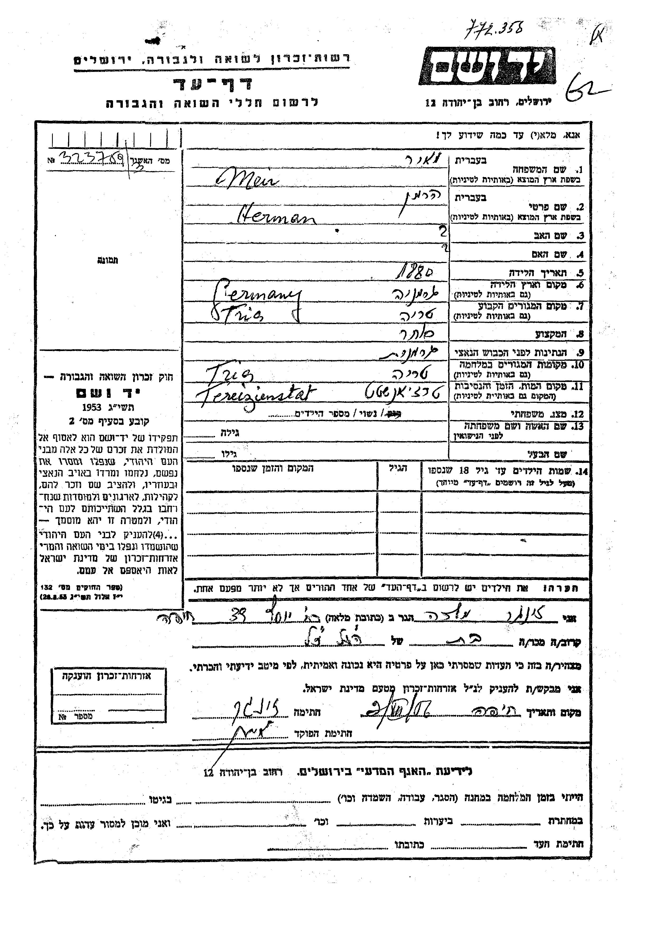 Herman wurde in der Schoah ermordet. Todesort: Theresienstadt, Tschechoslowakei.