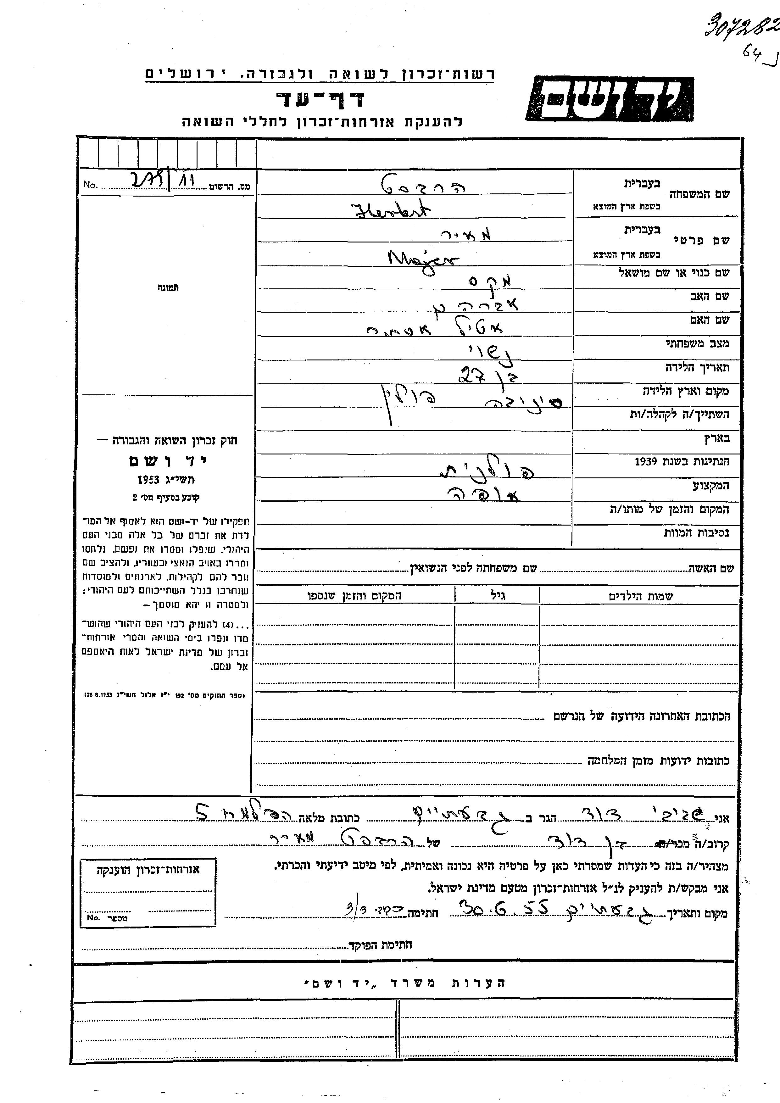 Majer Max wurde in der Schoah ermordet.