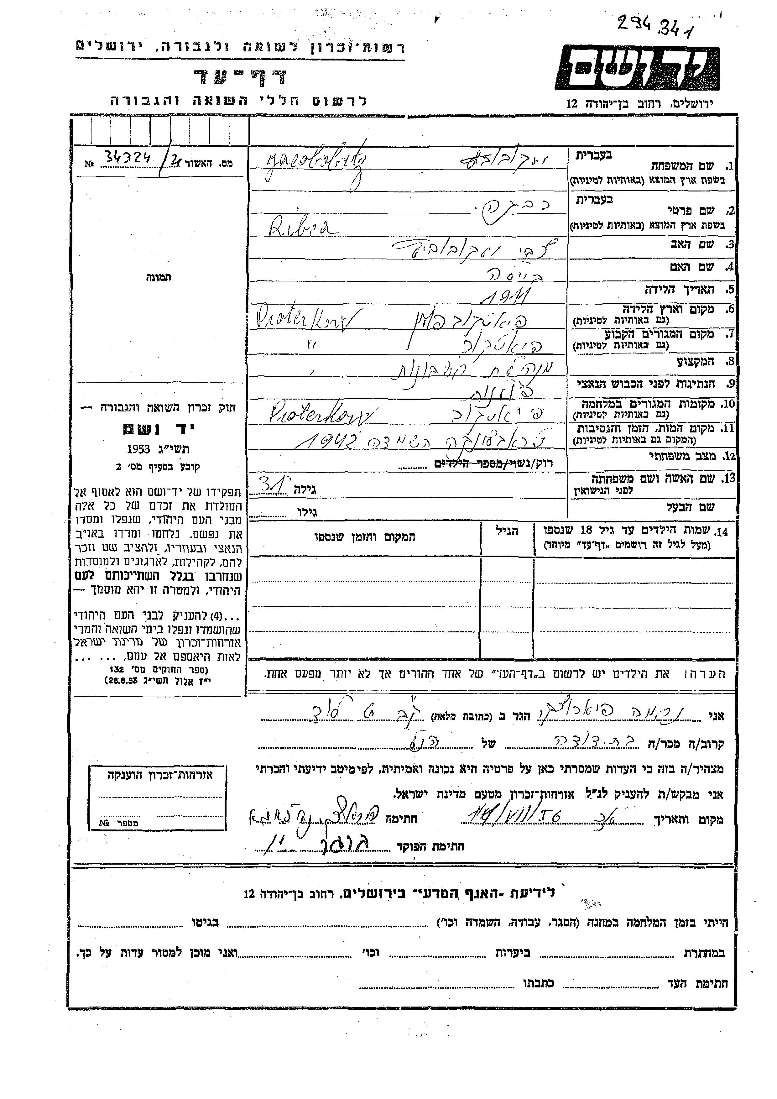 Ribca Jacobobitz wurde im Jahr 1911 in Piotrkow, Polen geboren. Sie war die Tochter von Tzvi und Peisa. Sie war Buchhalter/-in und Ledig. Vor dem Zweiten Weltkrieg lebte sie in Pioterkow, Polen. Während des Krieges war sie in Pioterkow, Polen.