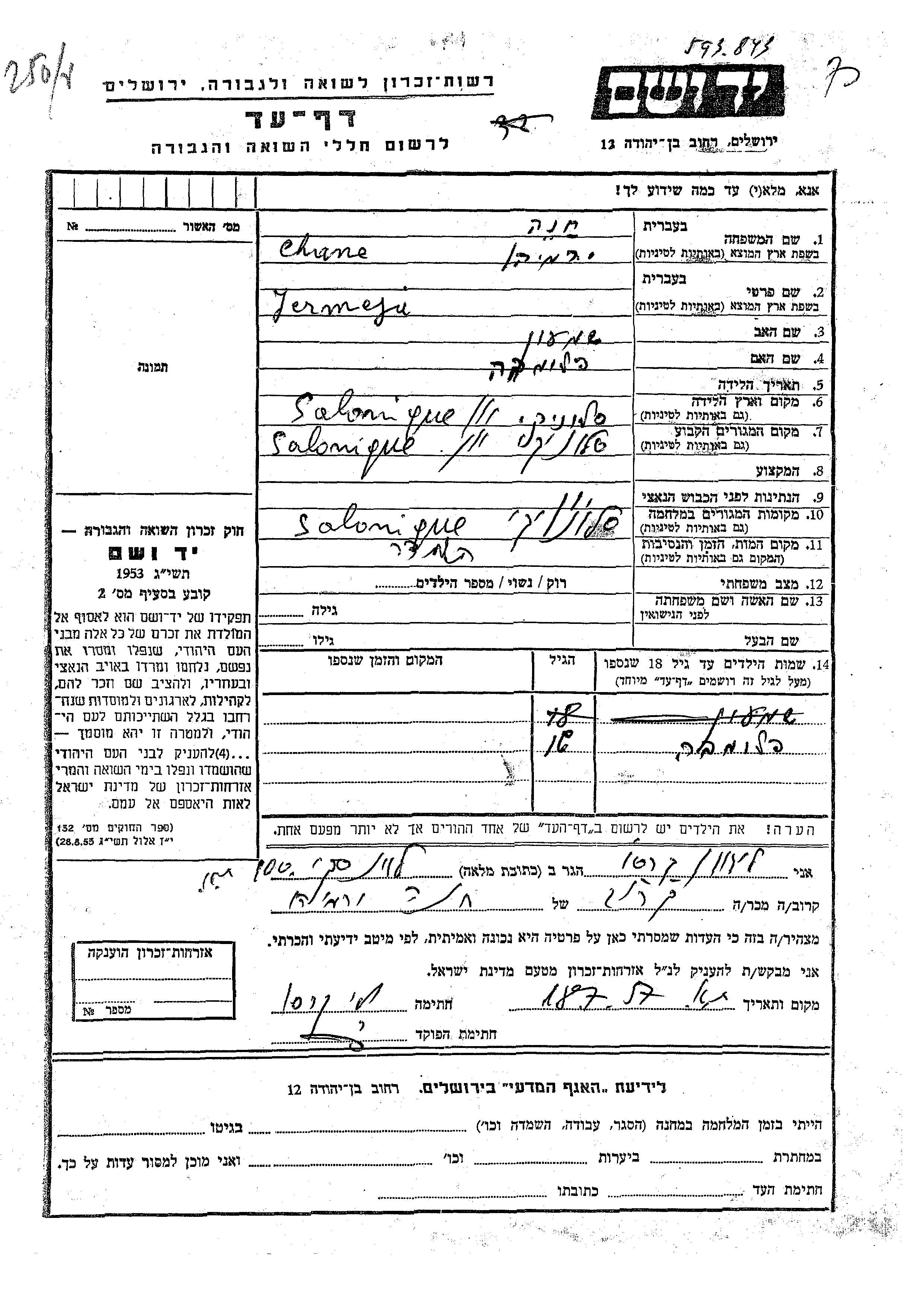 Chane Yermeju Salonika, Griechenland Gedenkblatt