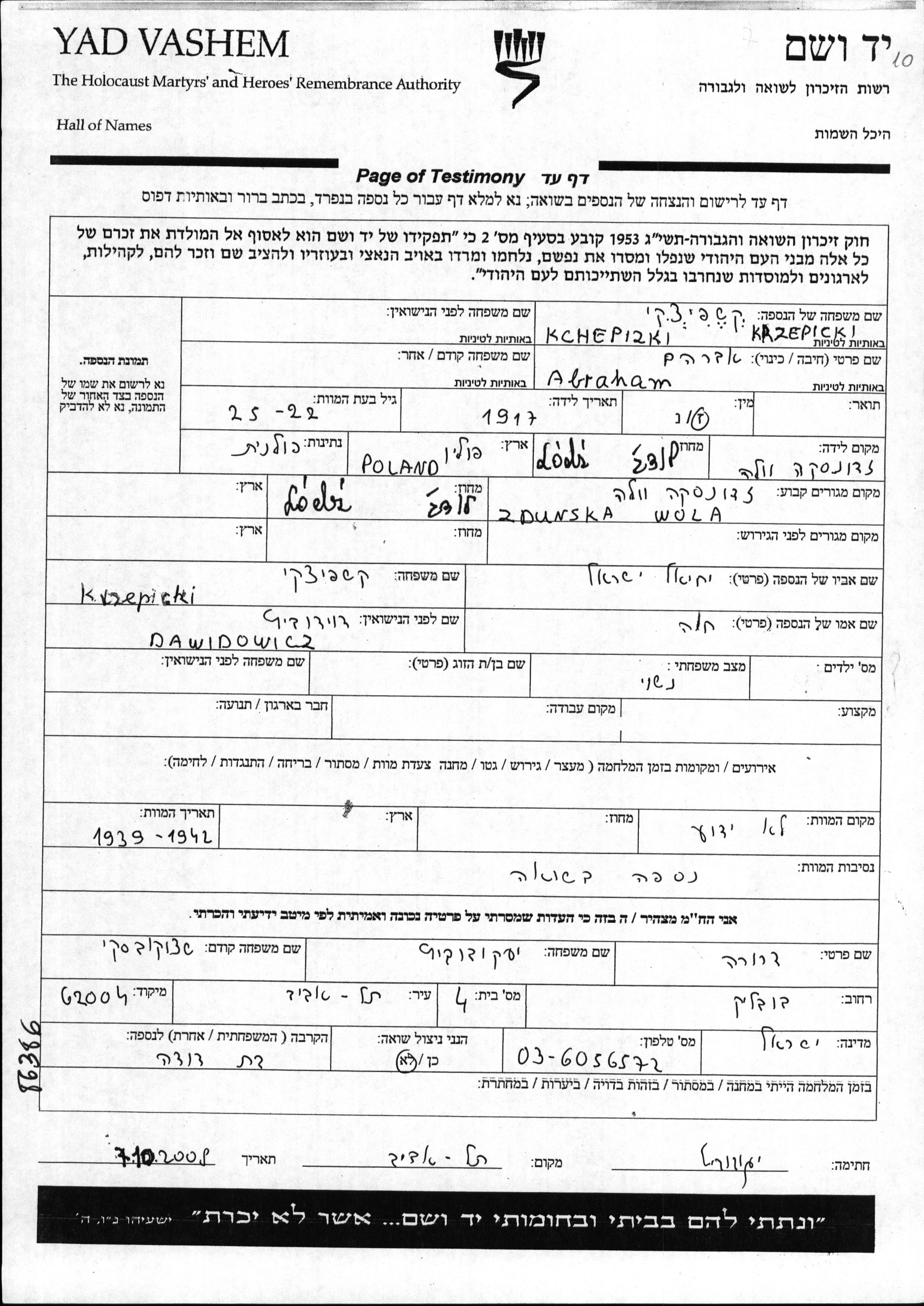 Suche nach einem Todesjahr im Zeitraum der Holocaust: 1933 bis 1945. Bitte wählen Sie 'Exakt' im Auswahlmenü, um nur nach einem einzelnen Jahr zu suchen, alternativ können Sie die flexibleren Optionen '+/- 2 Jahre' oder '+/- 5 Jahre' wählen.