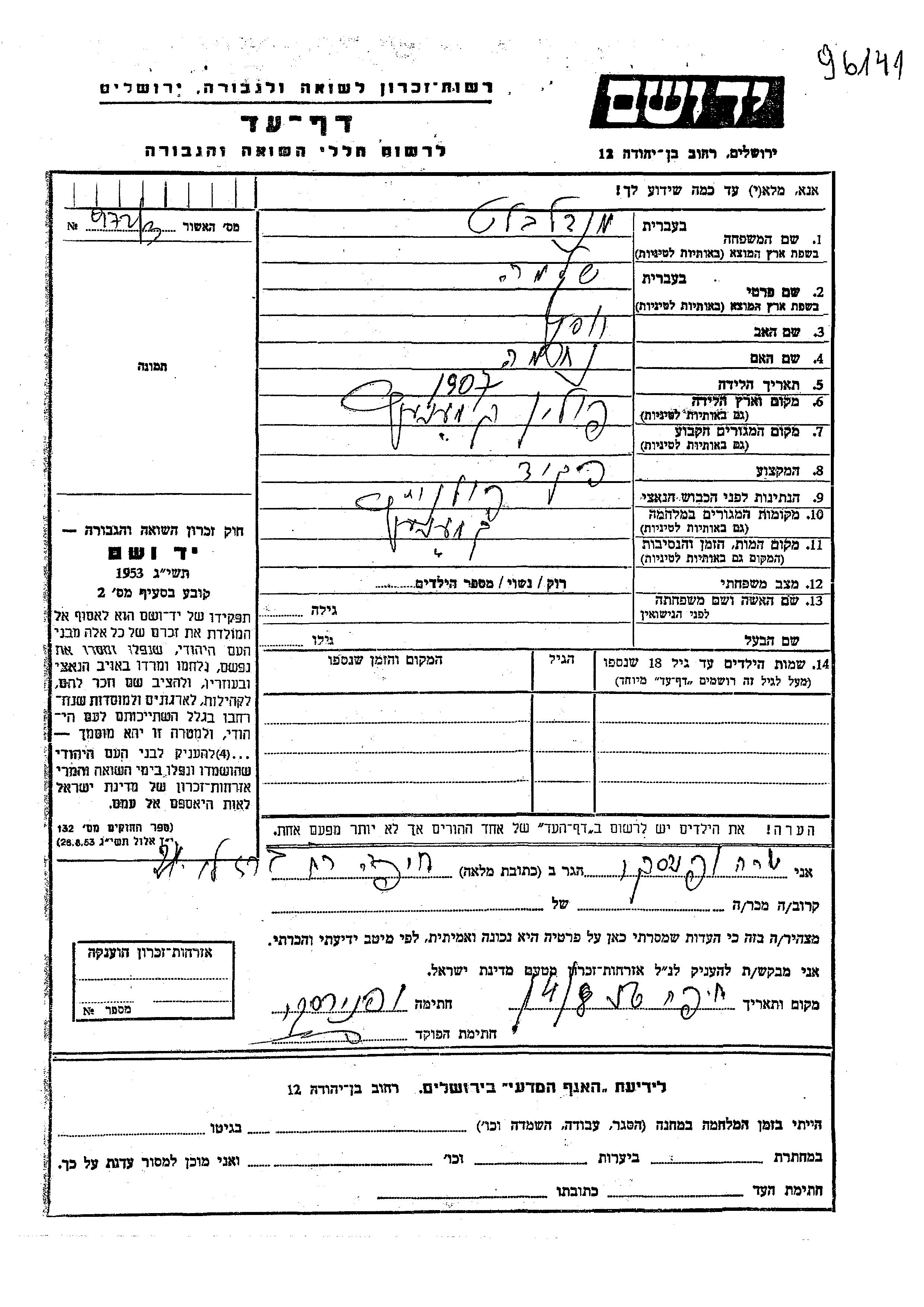 Shlomo Mandelblat wurde im Jahr 1907 in Kamieniec Litewski, Polen geboren. Er war der Sohn von Yosef und Nekhama. Er war Angestellte/-r. Während des Krieges war er in Kamieniec Litewski, Polen.