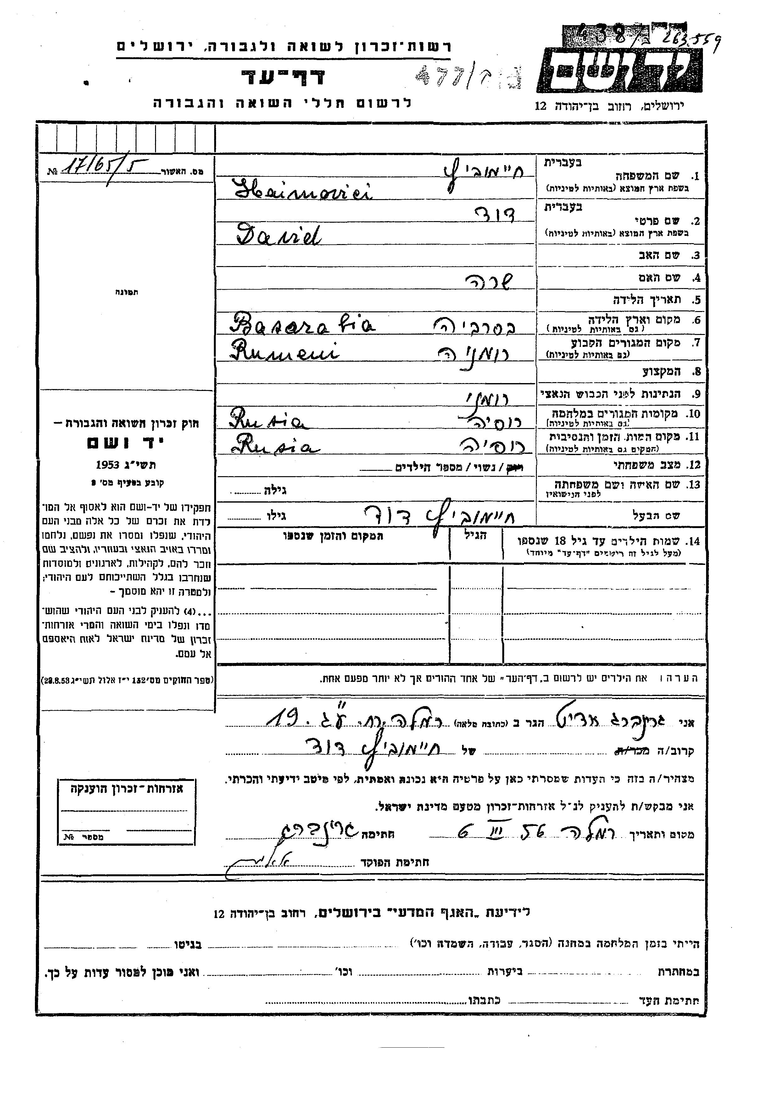 David Haimovici wurde in Bessarabia, Rumänien geboren. Er war der Sohn von Sara. Er war Verheiratet. Vor dem Zweiten Weltkrieg lebte er in Bessarabia, Rumänien. Während des Krieges war er in Russland (UdSSR).