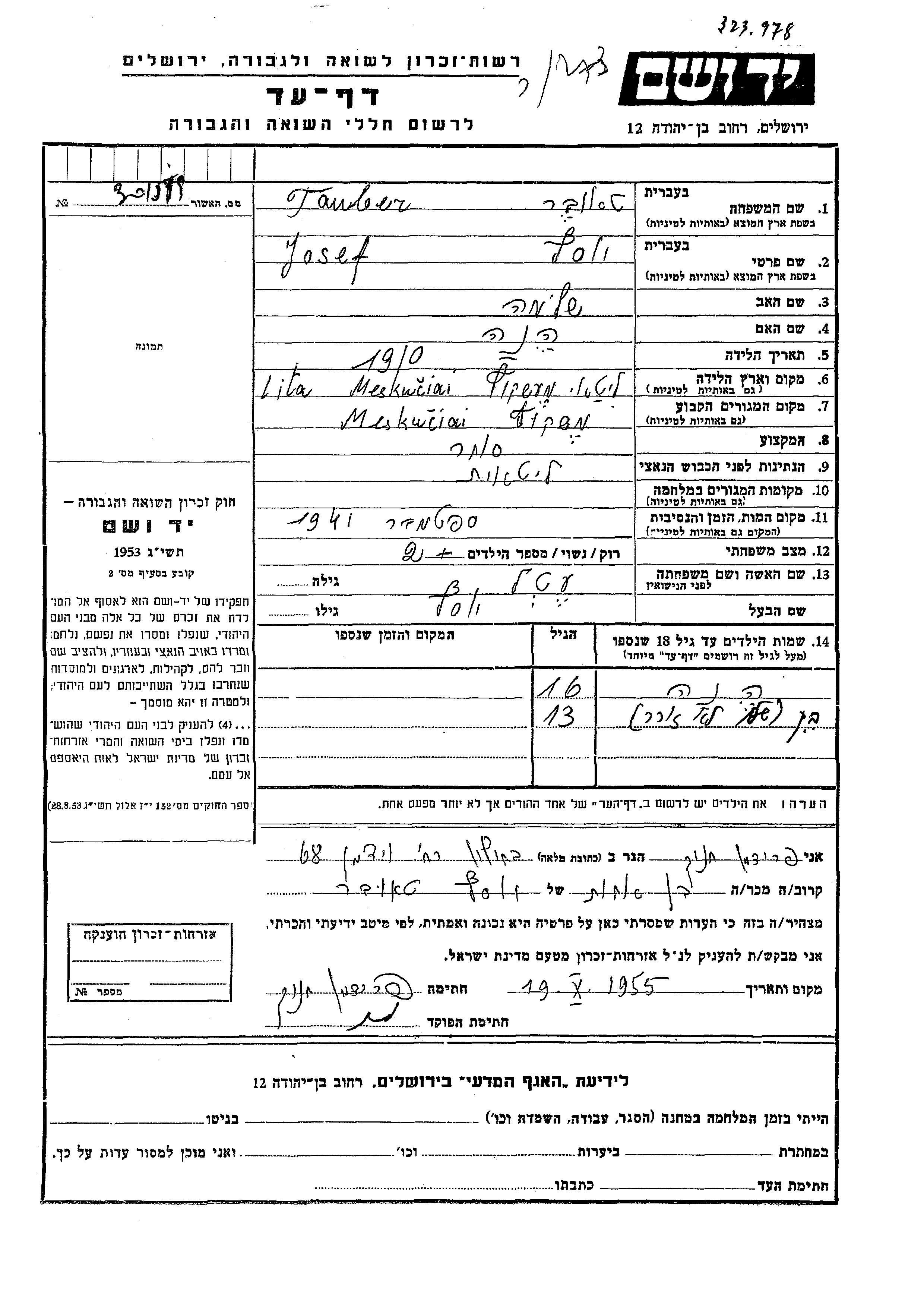 Yosef wurde in der Schoah ermordet. Todesort: unbekannt im Jahr 09/1941.