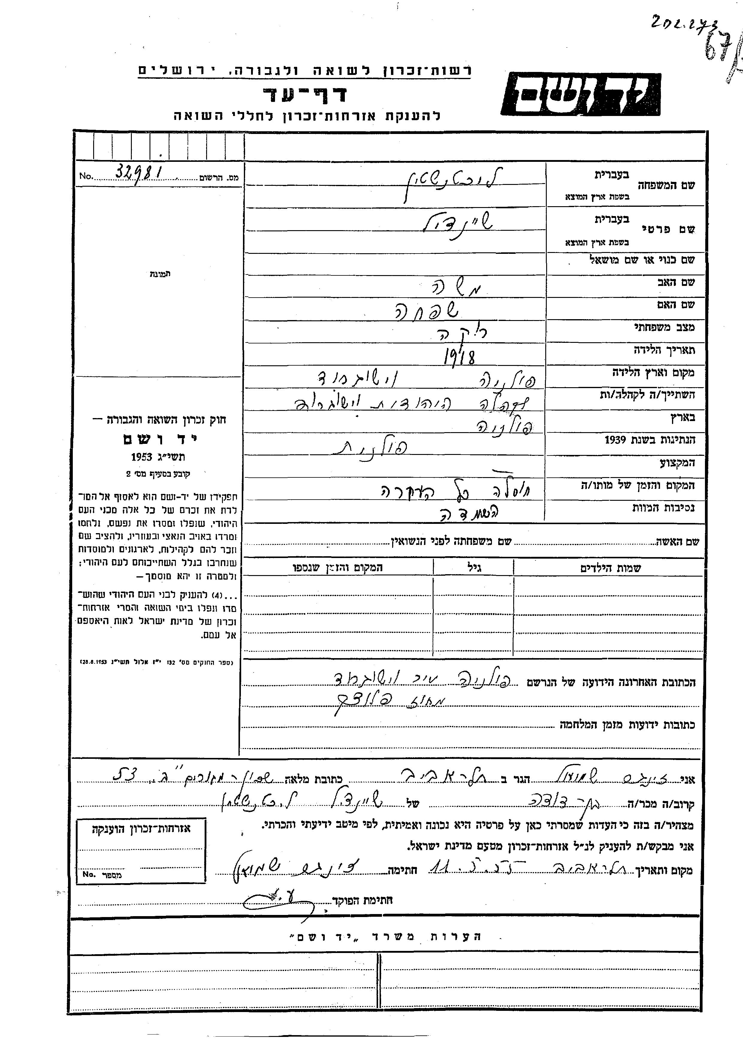 Sheindil Likhtenshtein wurde im Jahr 1918 in Wyszogrod, Polen geboren. Sie war die Tochter von Moshe und Shifra. Sie war Ledig. Vor dem Zweiten Weltkrieg lebte sie in Wyszogrod, Polen.