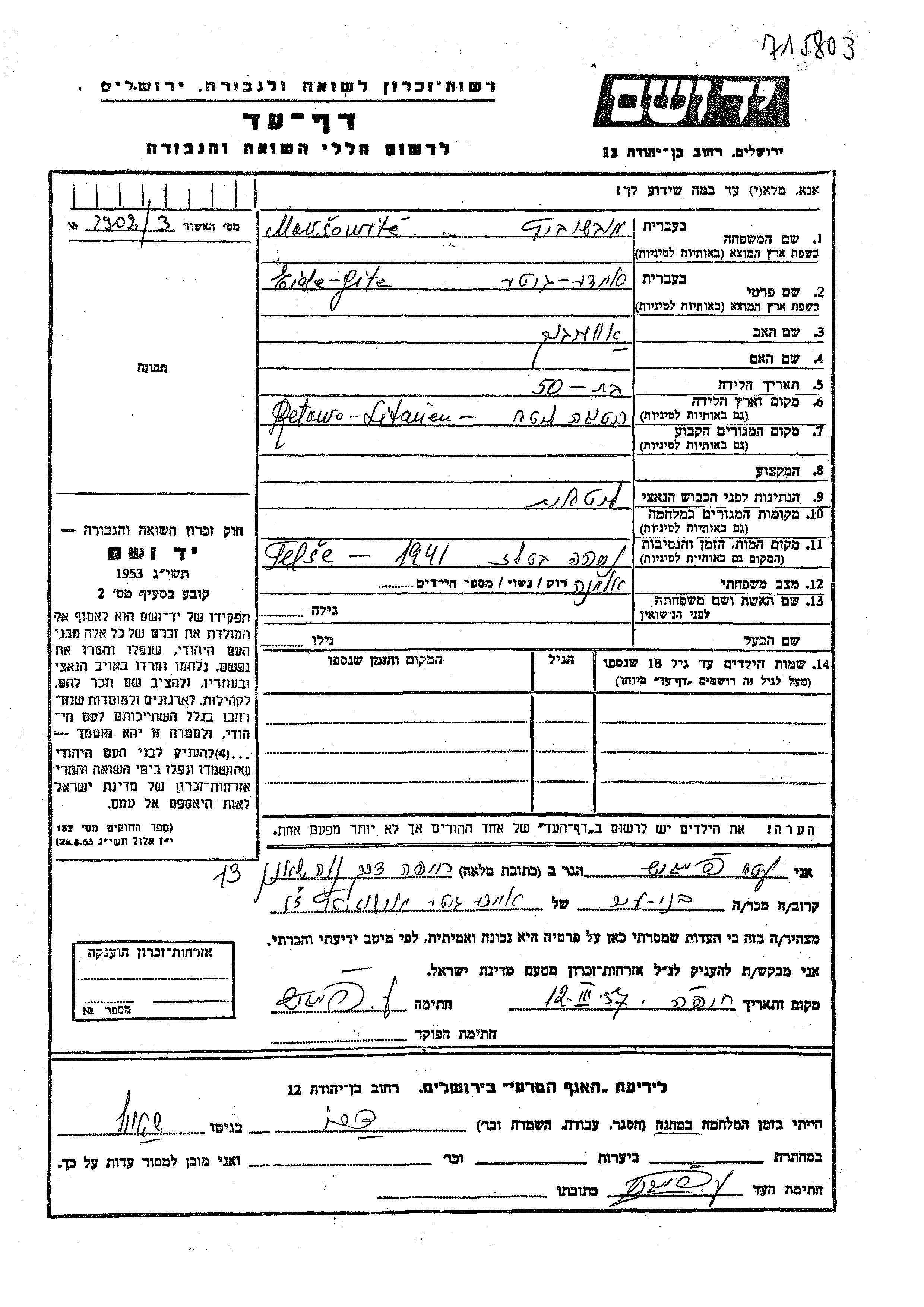 Eide Gite Aide wurde in der Schoah ermordet. Todesort: Telse, Litauen im Jahr 1941.
