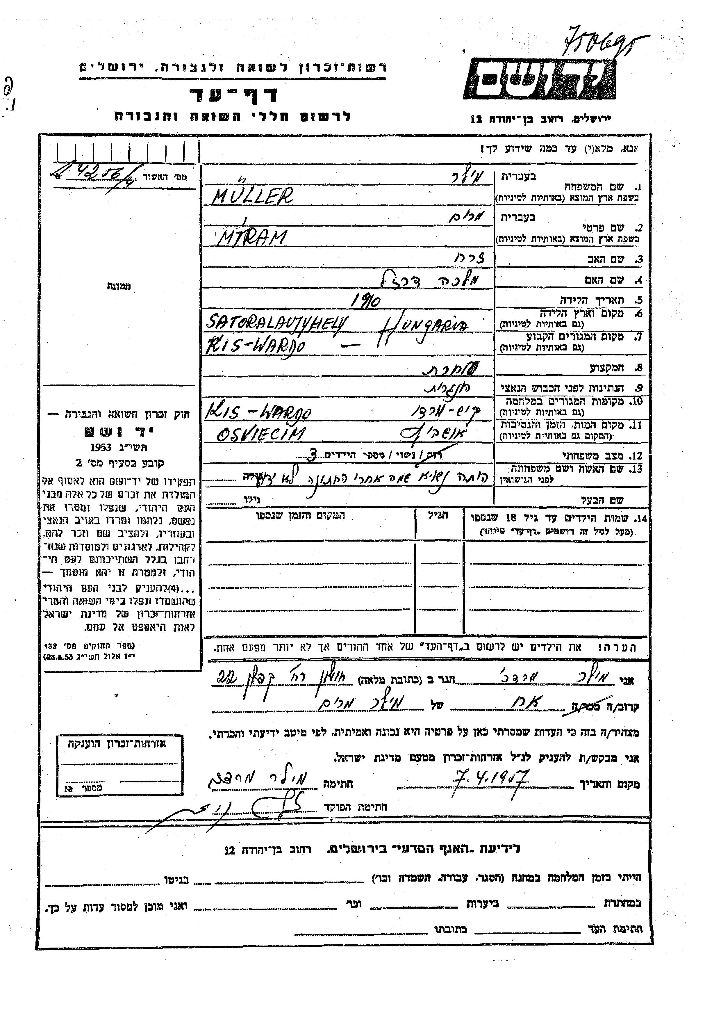 Miram wurde in der Schoah ermordet. Todesort: Auschwitz, Polen.