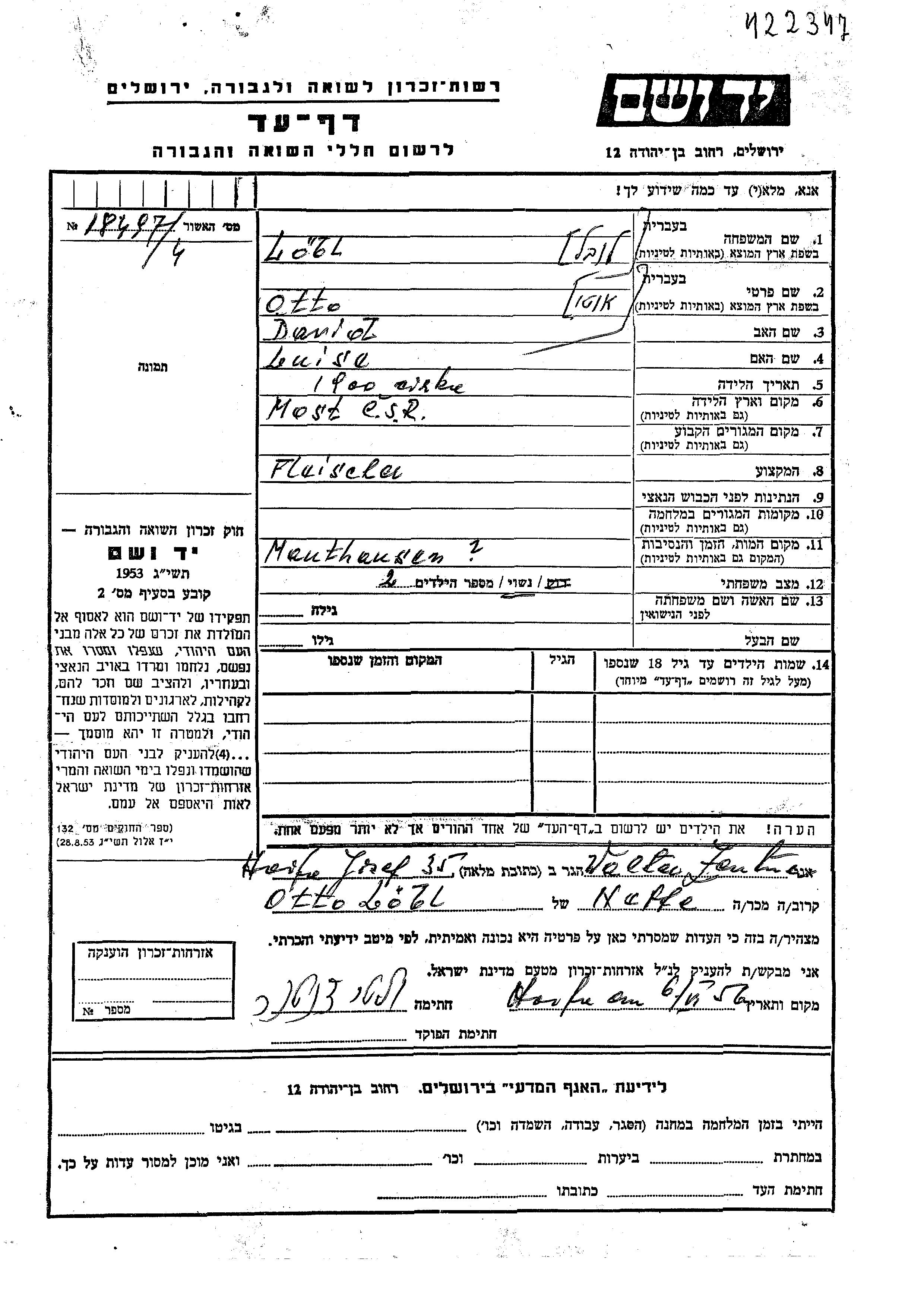 Otto Lobl Loevel wurde im Jahr 1900 in Most, Tschechoslowakei geboren. Er war der Sohn von David und Luise. Er war Metzger/-in und Verheiratet.