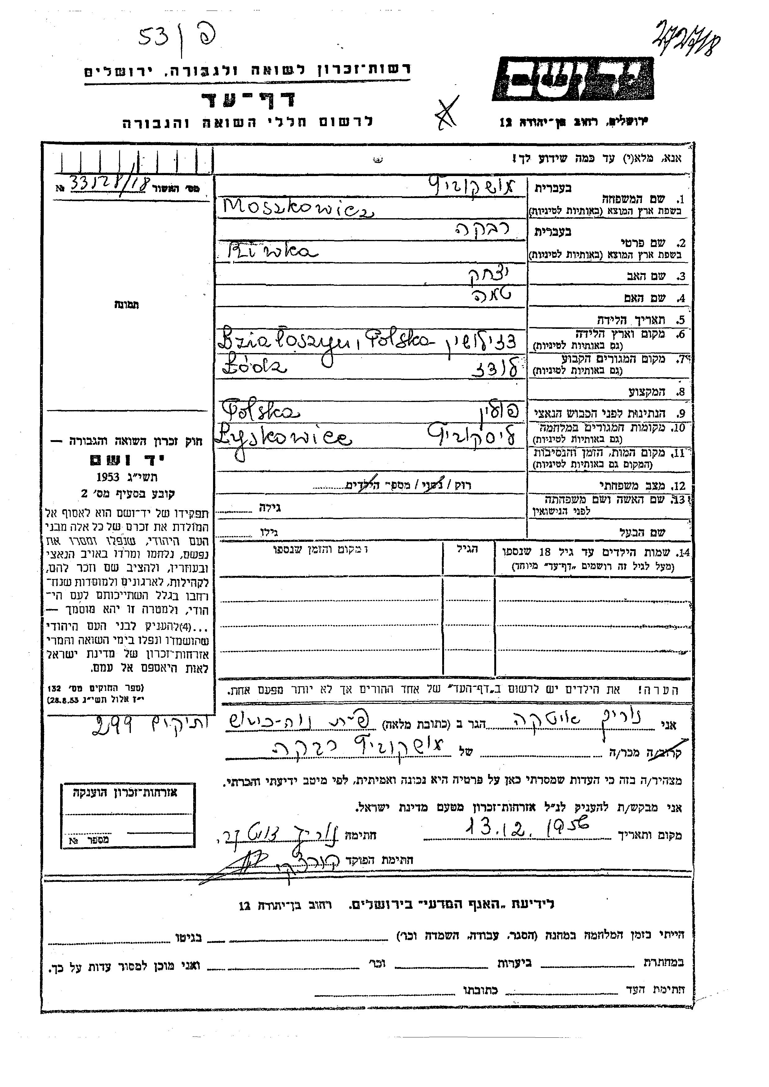 Moszkowicz Riwka Lodz, Polen Gedenkblatt