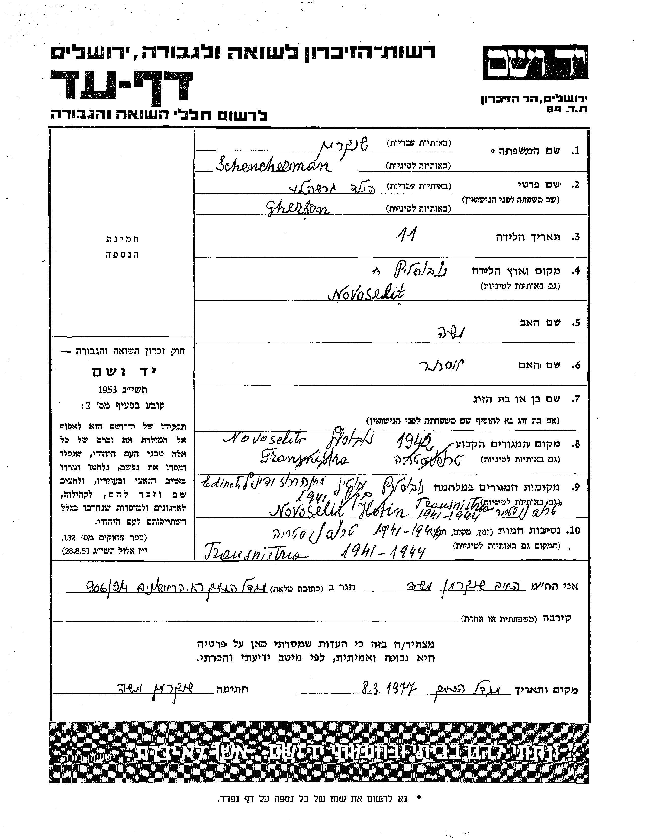 Schencherman Gherson Novoselita, Rumänien Gedenkblatt