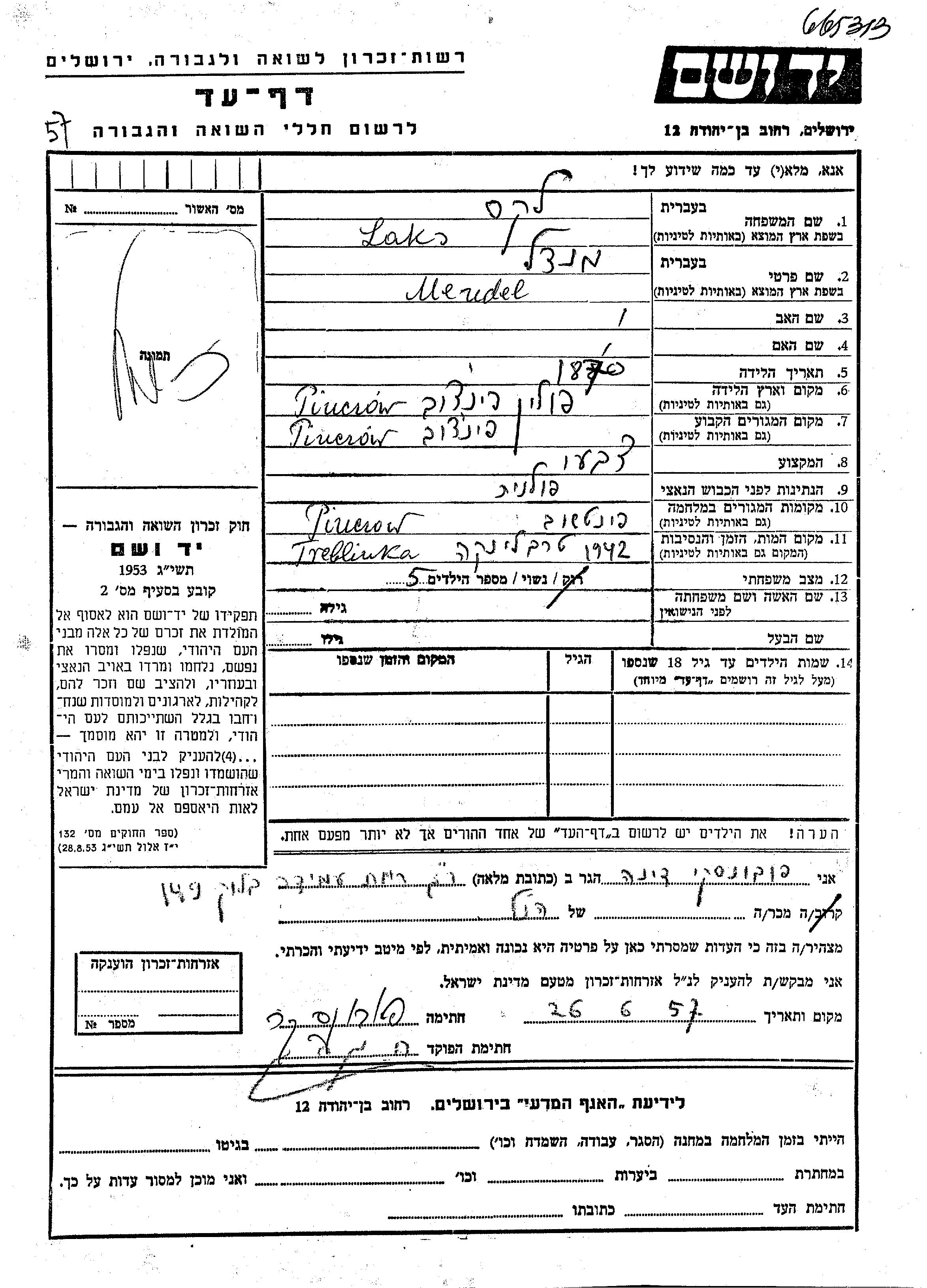 Mendel Laks wurde im Jahr 1870 in Pinczow, Polen geboren. Er war Anstreicher/-in und Verheiratet. Vor dem Zweiten Weltkrieg lebte er in Pinczow, Polen. Während des Krieges war er in Pinczow, Polen.