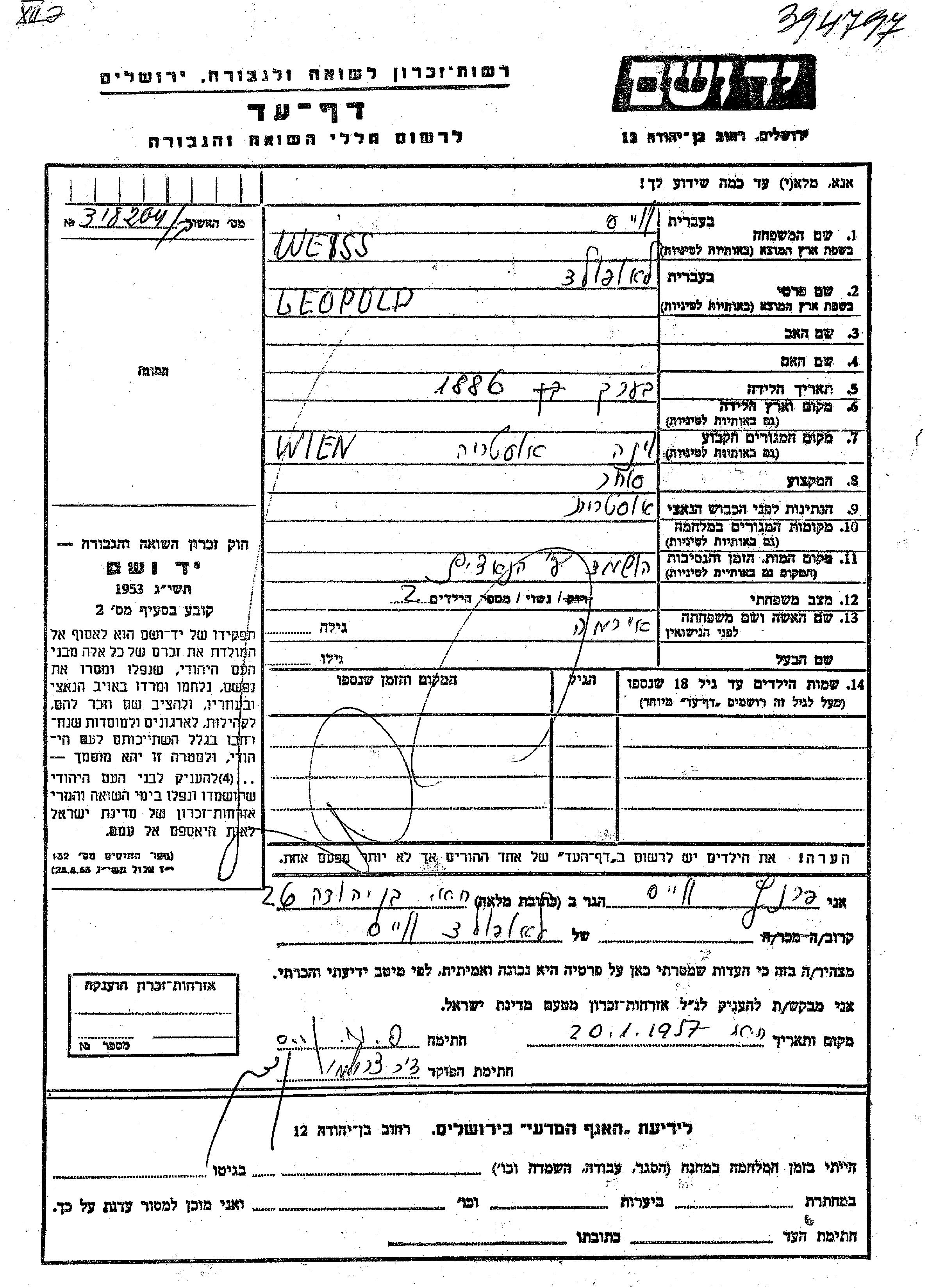 Leopold Weiss wurde im Jahr 1886 geboren. Er war Kaufmann/-frau und mit Irma Verheiratet. Vor dem Zweiten Weltkrieg lebte er in Wien, Österreich.