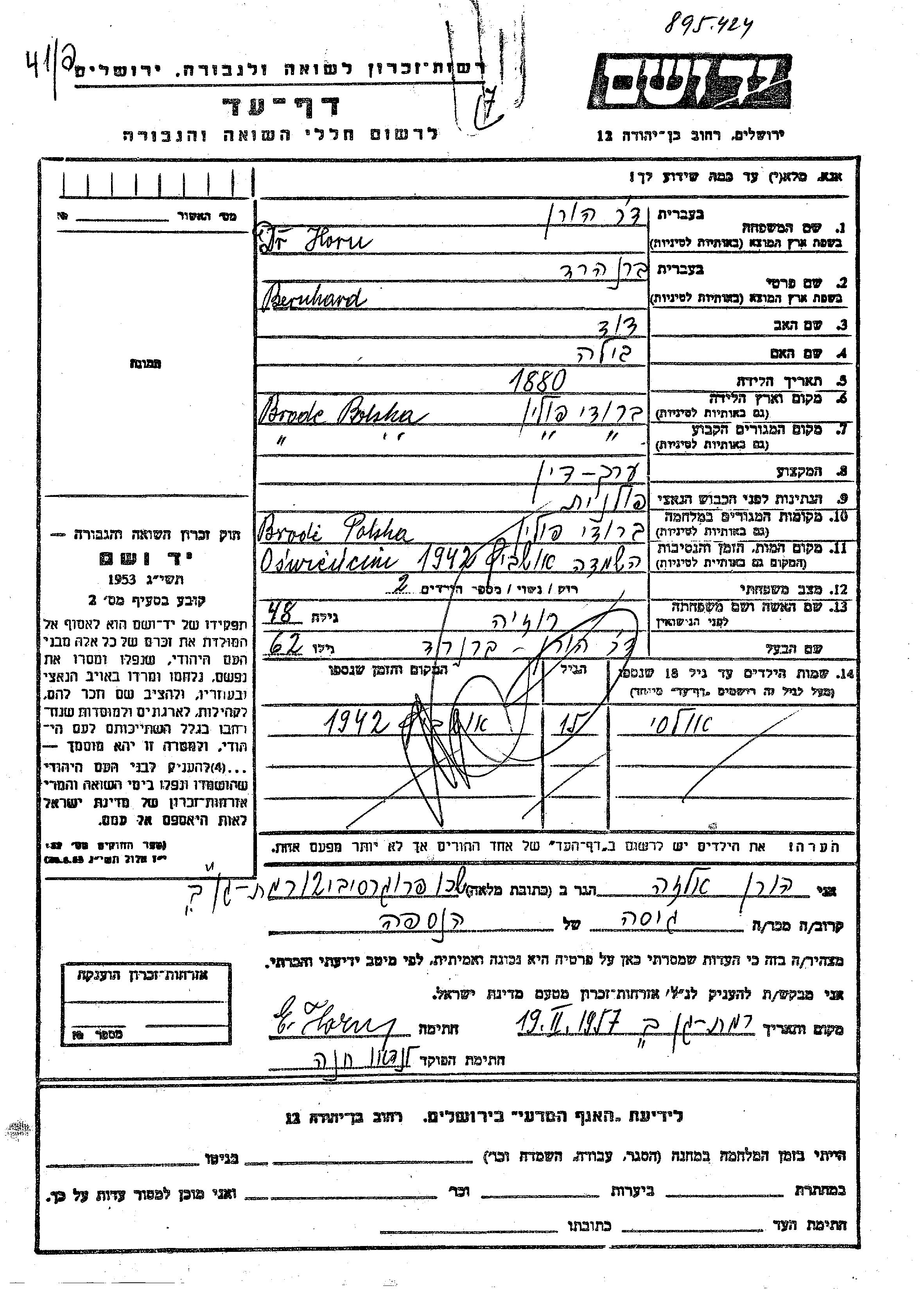Dr. Bernhard Horn wurde im Jahr 1880 in Brodi, Polen geboren. Er war der Sohn von David und Bila. Er war Rechtsanwalt/rechtsanwältin und mit Rozia Verheiratet. Vor dem Zweiten Weltkrieg lebte er in Brodi, Polen. Während des Krieges war er in Brodi, Polen.