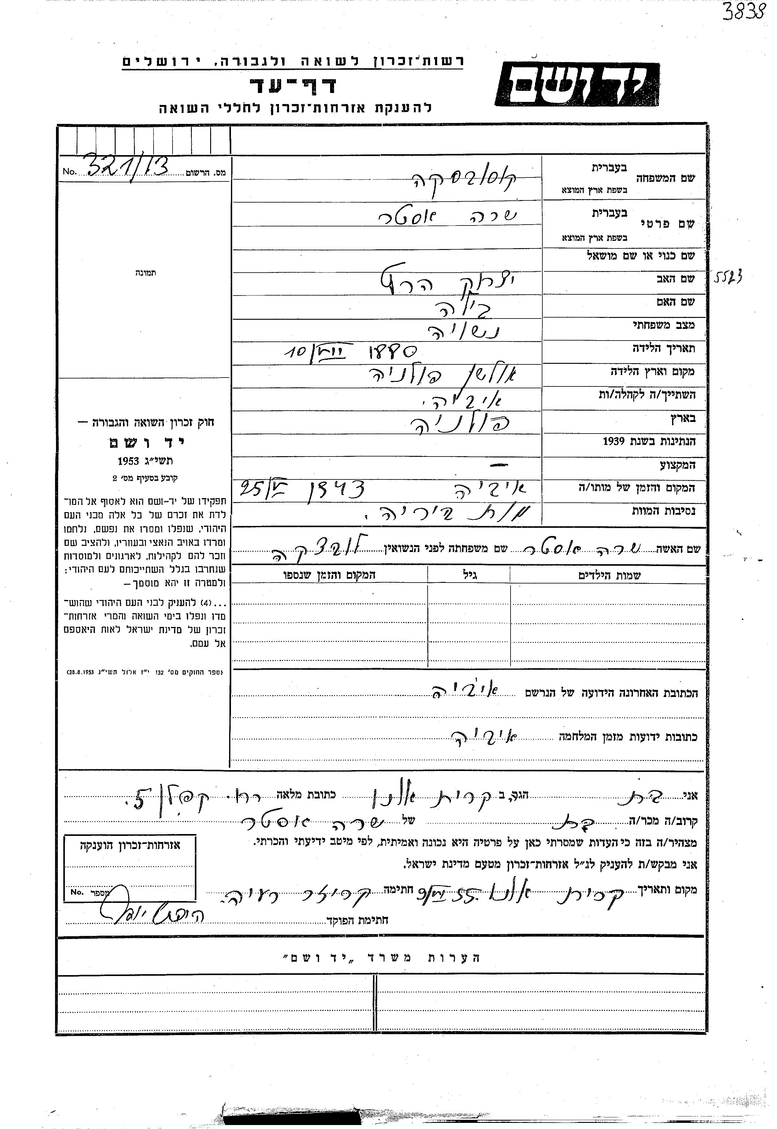 Sara Ester wurde in der Schoah ermordet. Todesort: Ivia, Polen im Jahr 25/05/1943.
