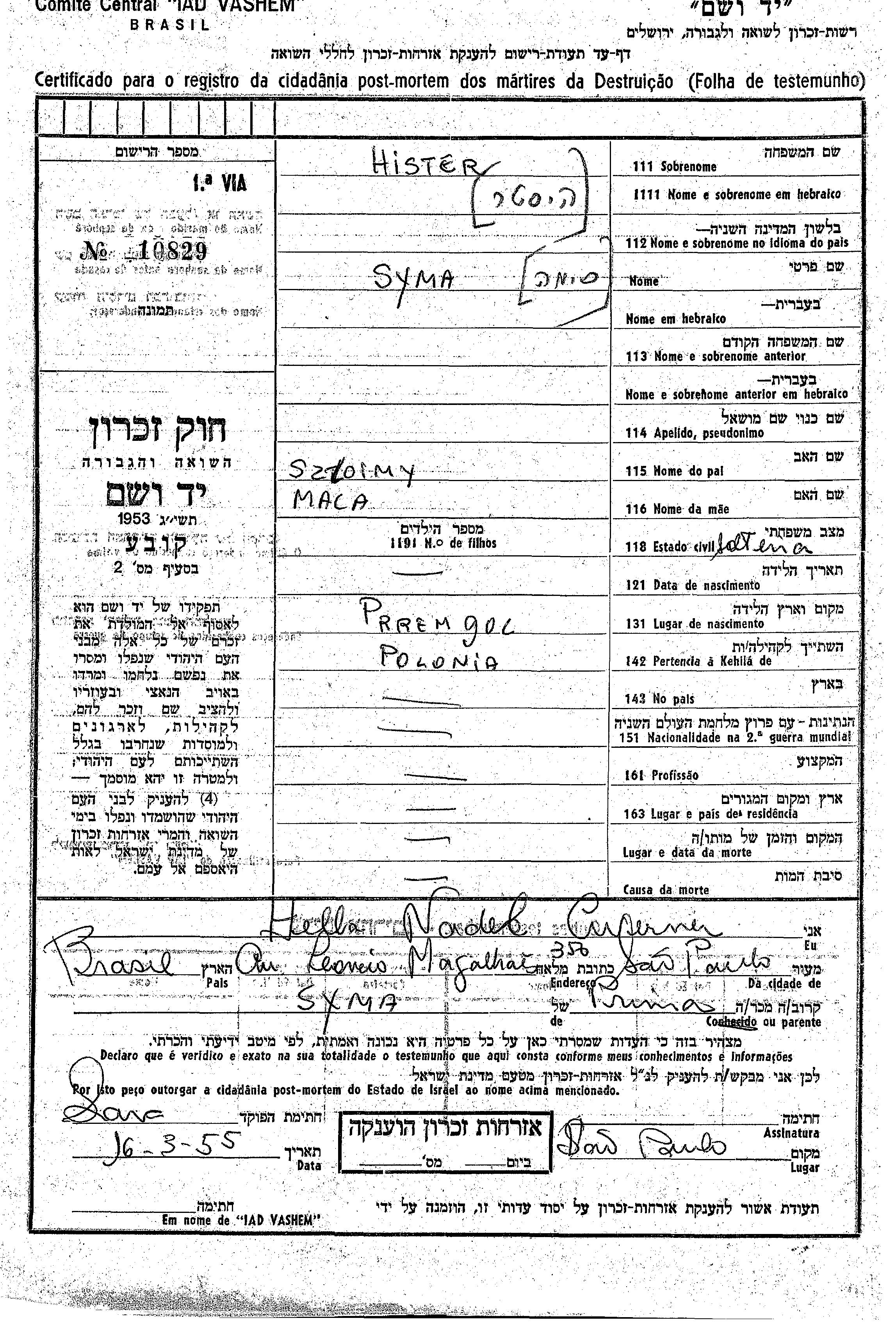 Syma wurde in der Schoah ermordet.