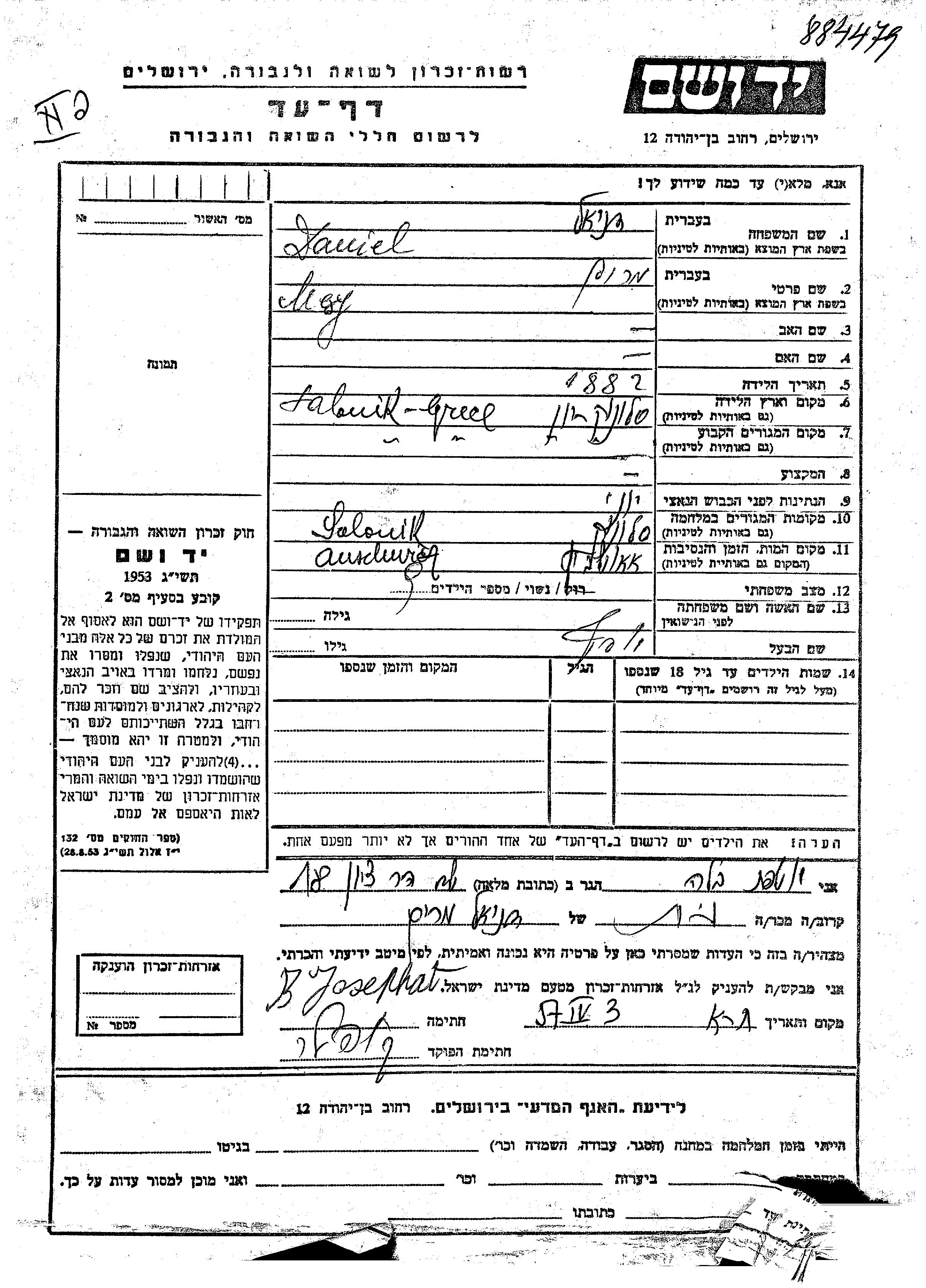 Mery Miriam Daniel wurde im Jahr 1882 in Salonika, Griechenland geboren. Sie war mit Yosef Verheiratet. Vor dem Zweiten Weltkrieg lebte sie in Salonika, Griechenland. Während des Krieges war sie in Salonika, Griechenland.