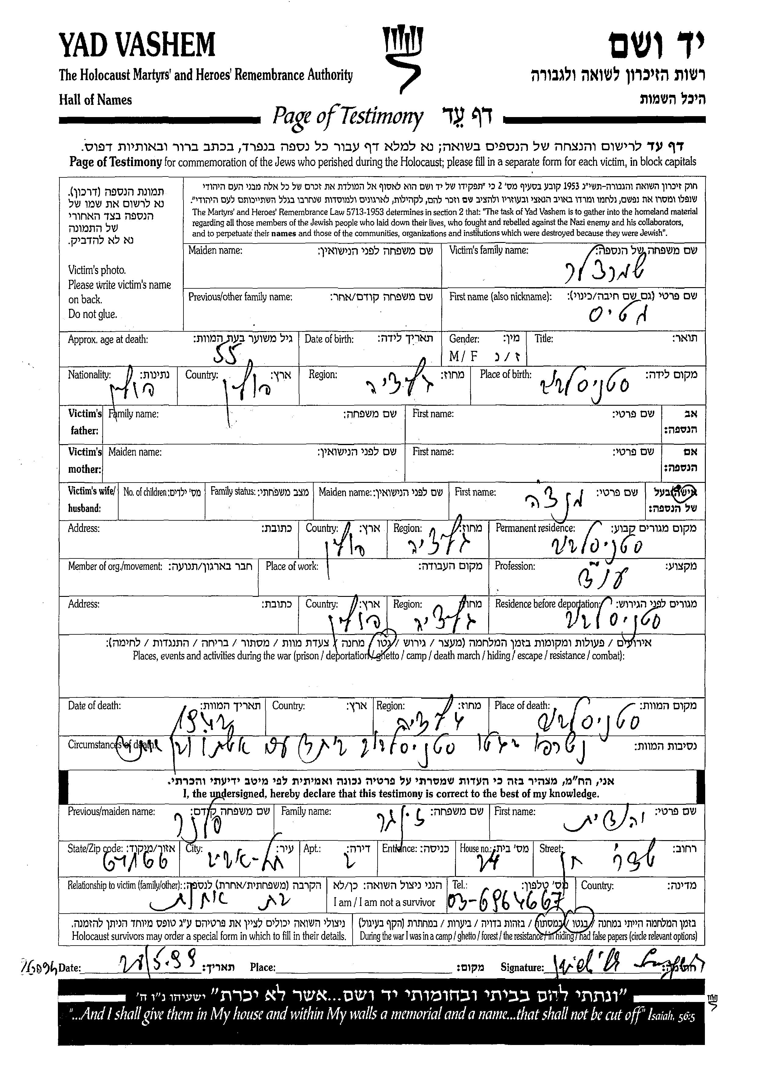 Matis Shmertzler wurde in Stanislawow, Polen geboren. Er war Rechtsanwalt/rechtsanwältin und mit Mantze Verheiratet. Vor dem Zweiten Weltkrieg lebte er in Stanislawow, Polen. Während des Krieges war er in Stanislawow, Polen.