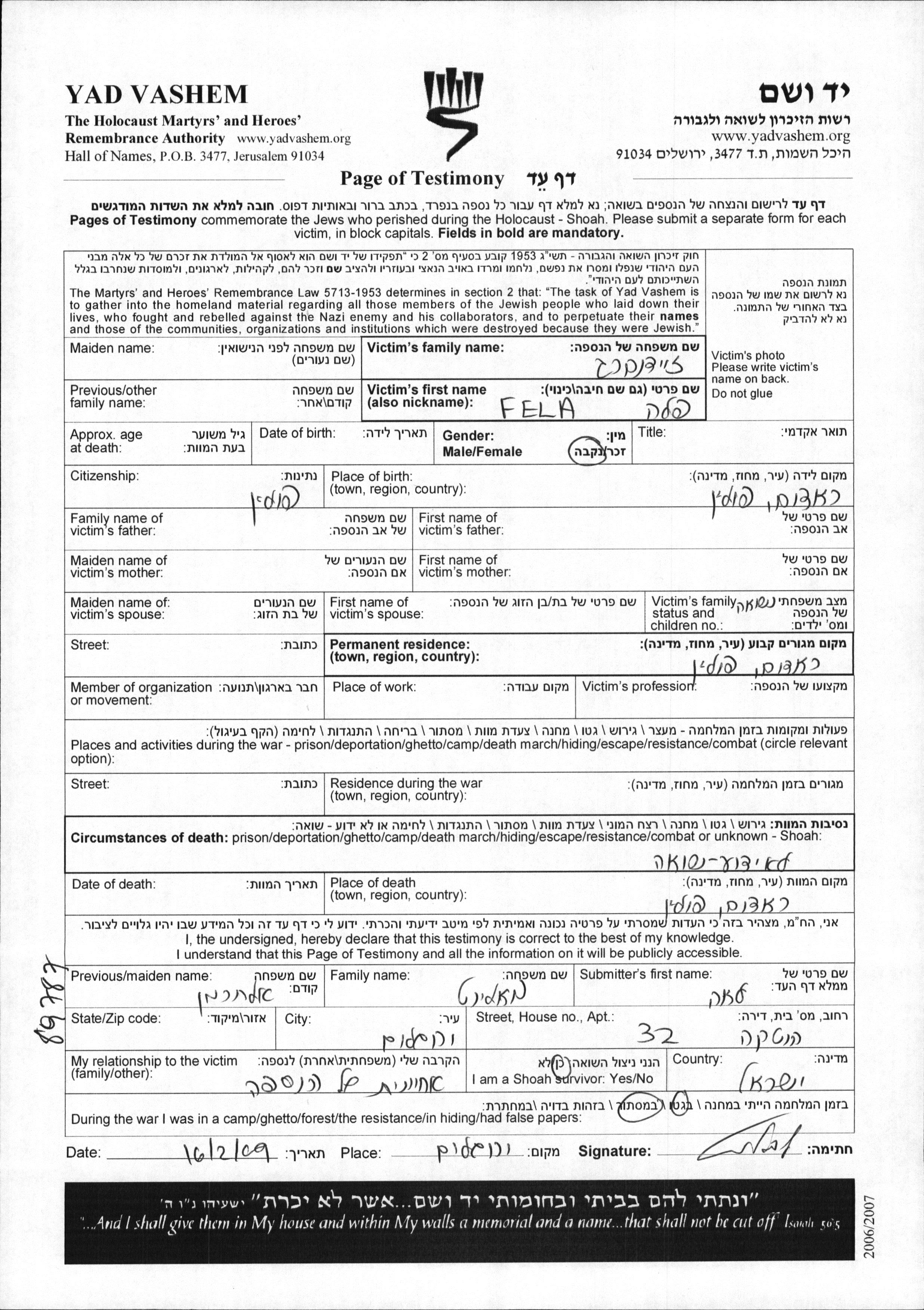 Fela wurde in der Schoah ermordet. Todesort: Radom, Polen.
