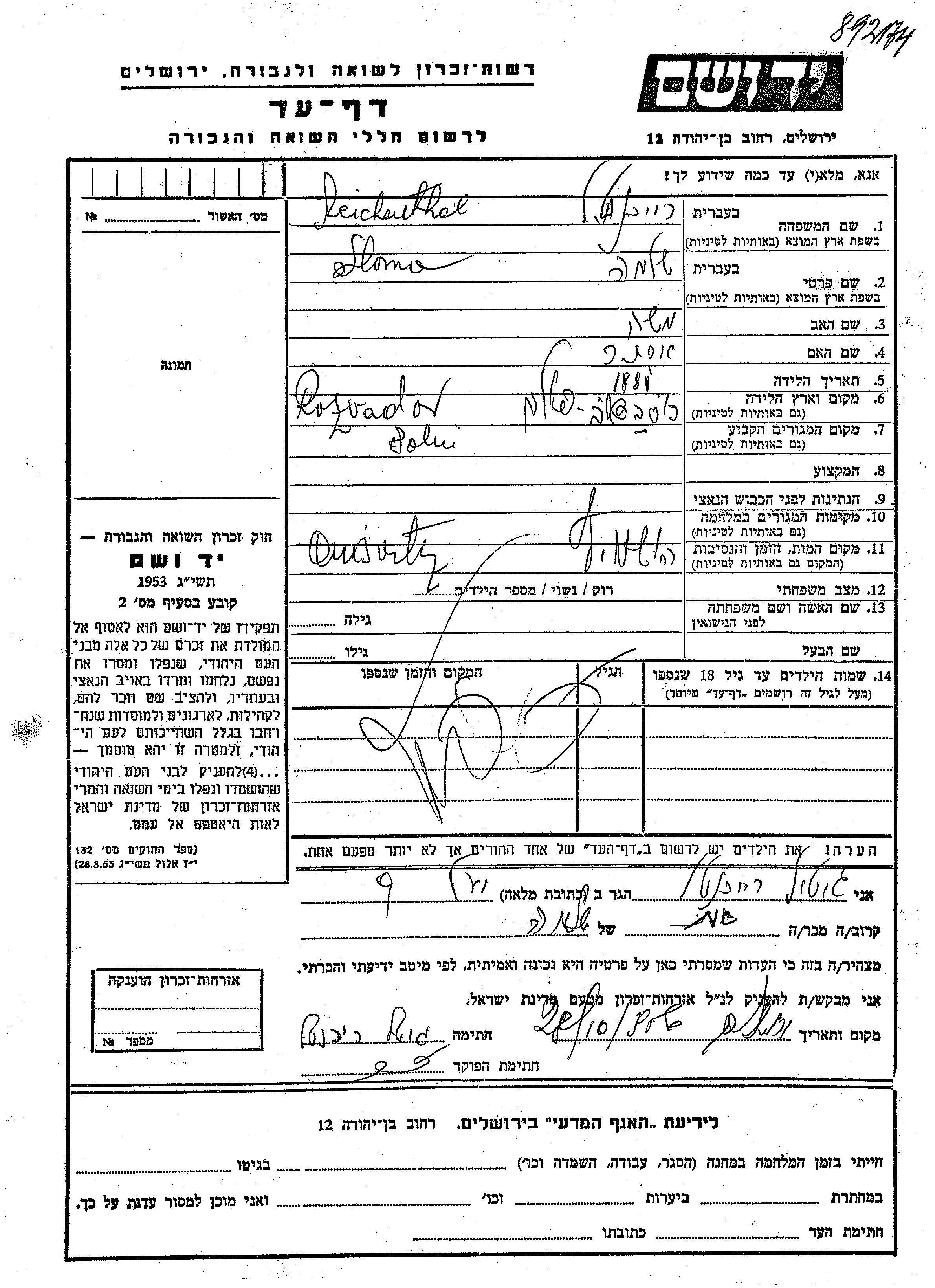 Sloma wurde in der Schoah ermordet. Todesort: Auschwitz, Polen.