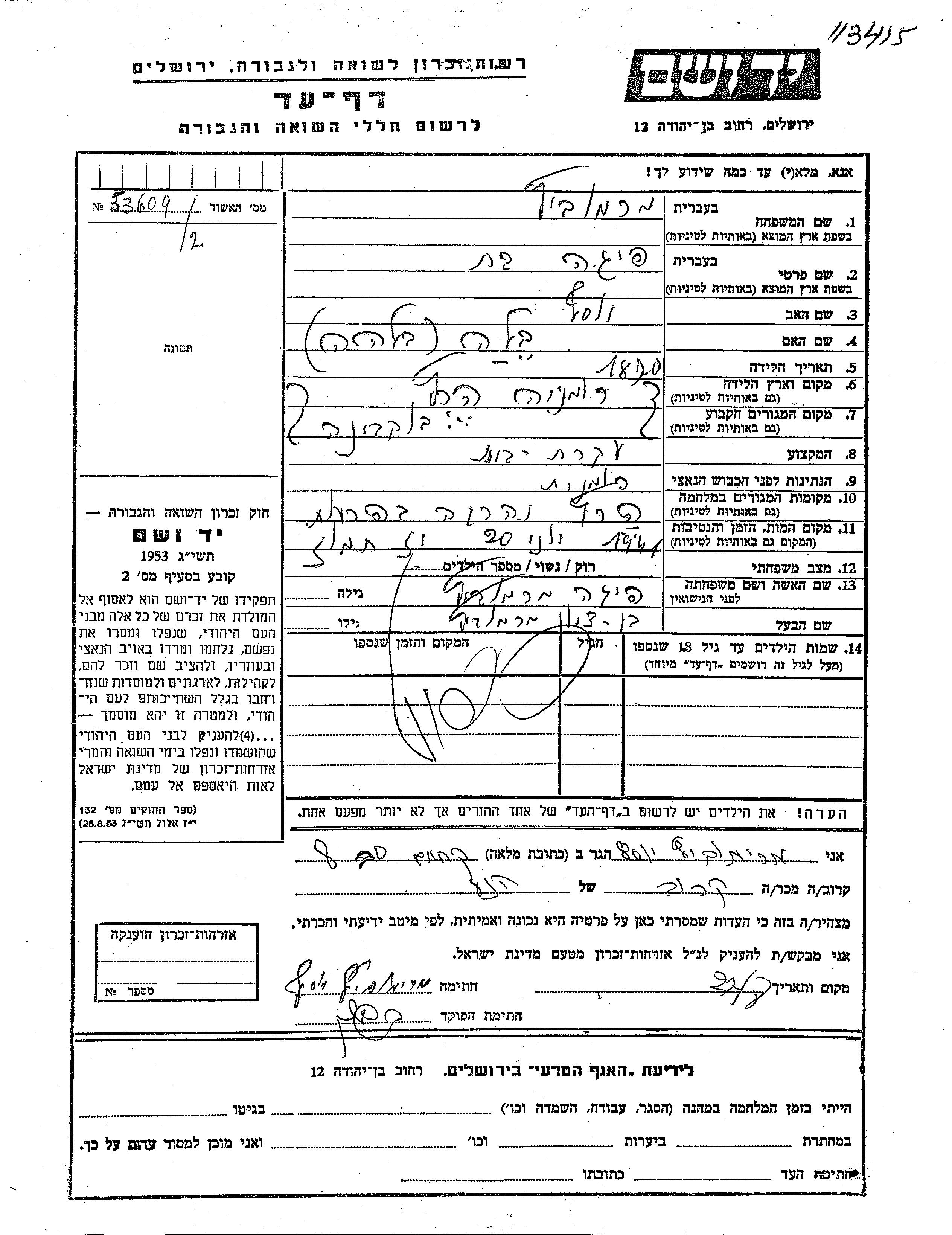 Yad Vashem - Gedenkblätter Sammlung