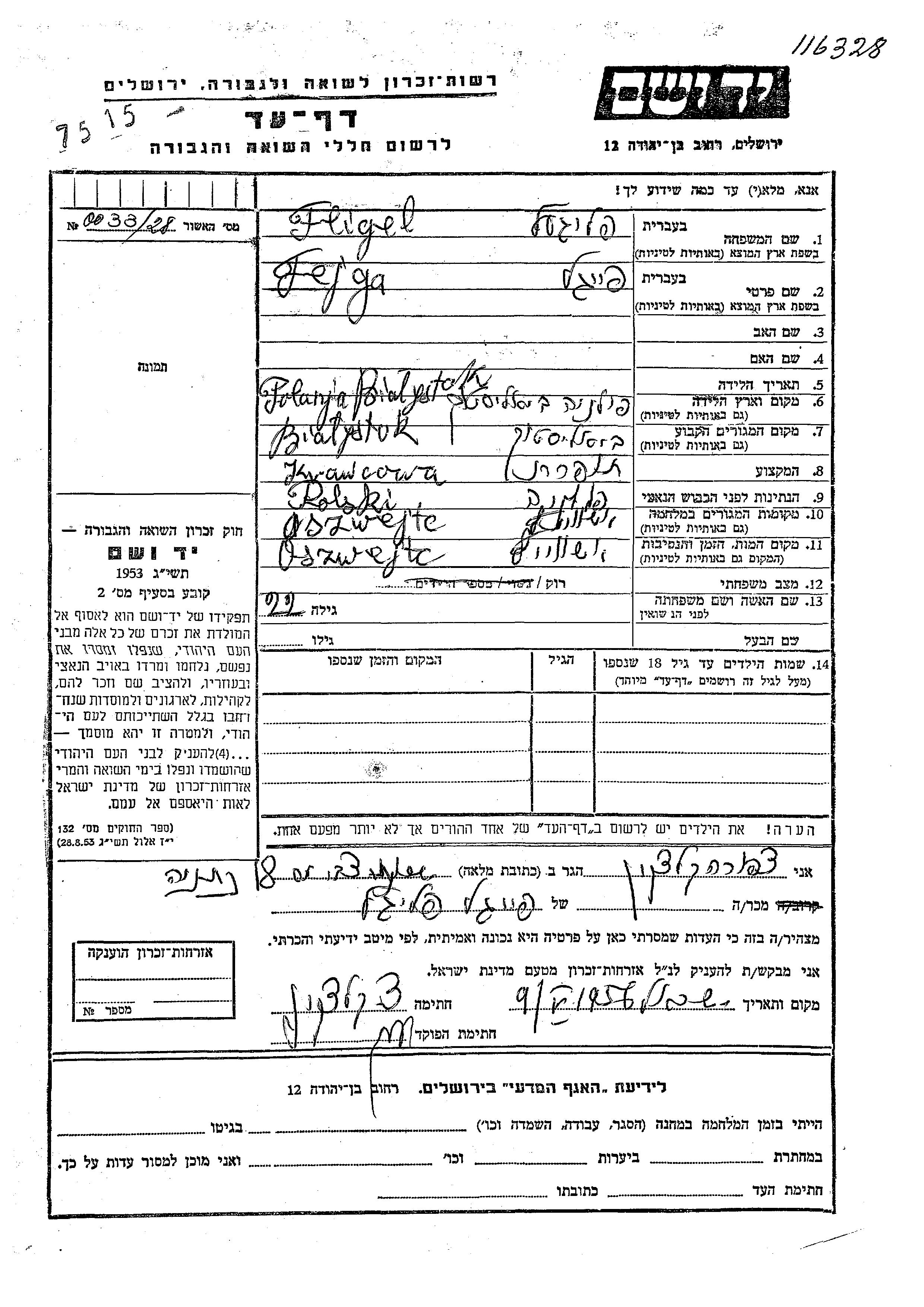 Fejga wurde in der Schoah ermordet. Todesort: Auschwitz, Polen.