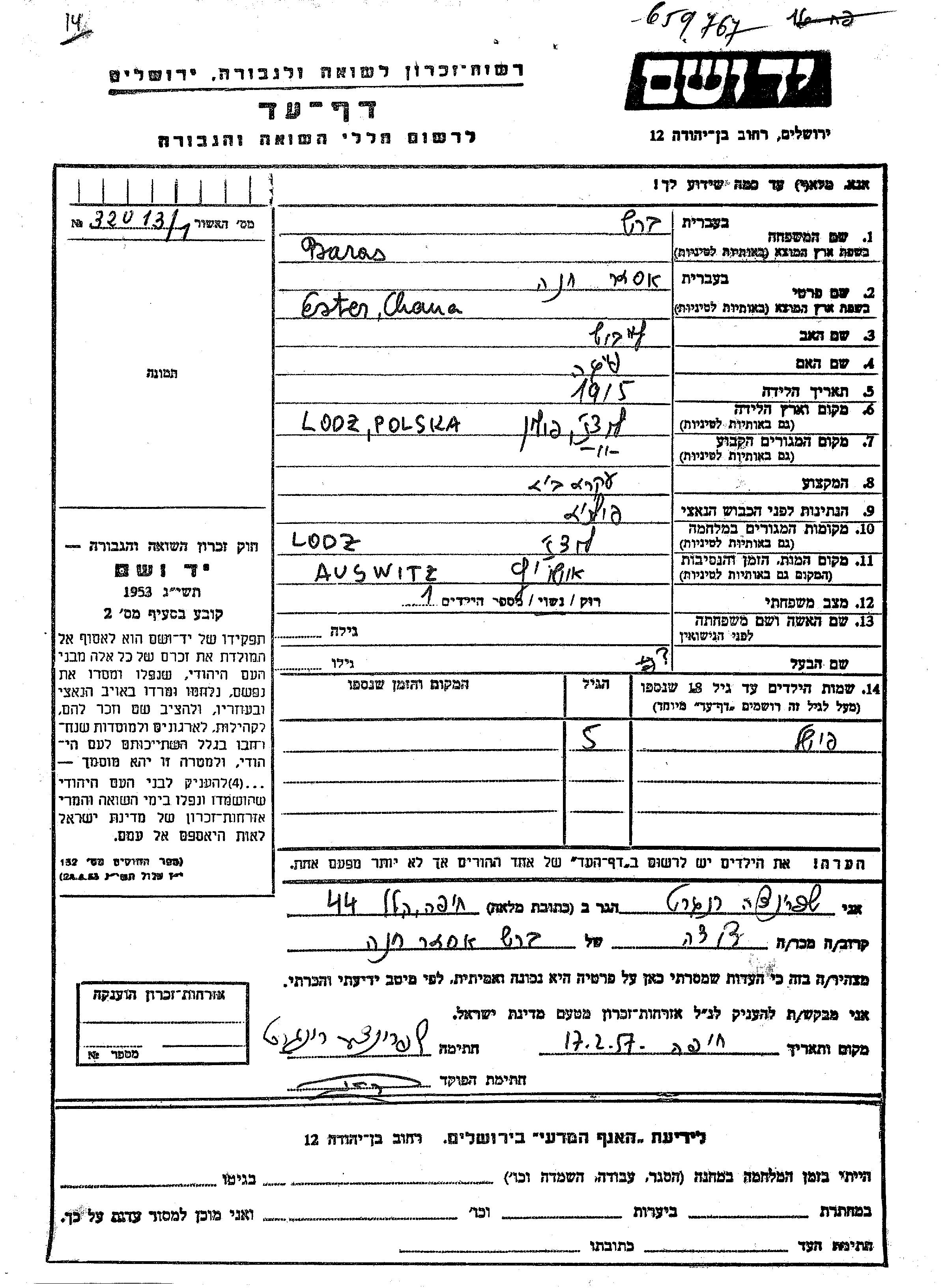 Chana Ester wurde in der Schoah ermordet. Todesort: Auschwitz, Polen.