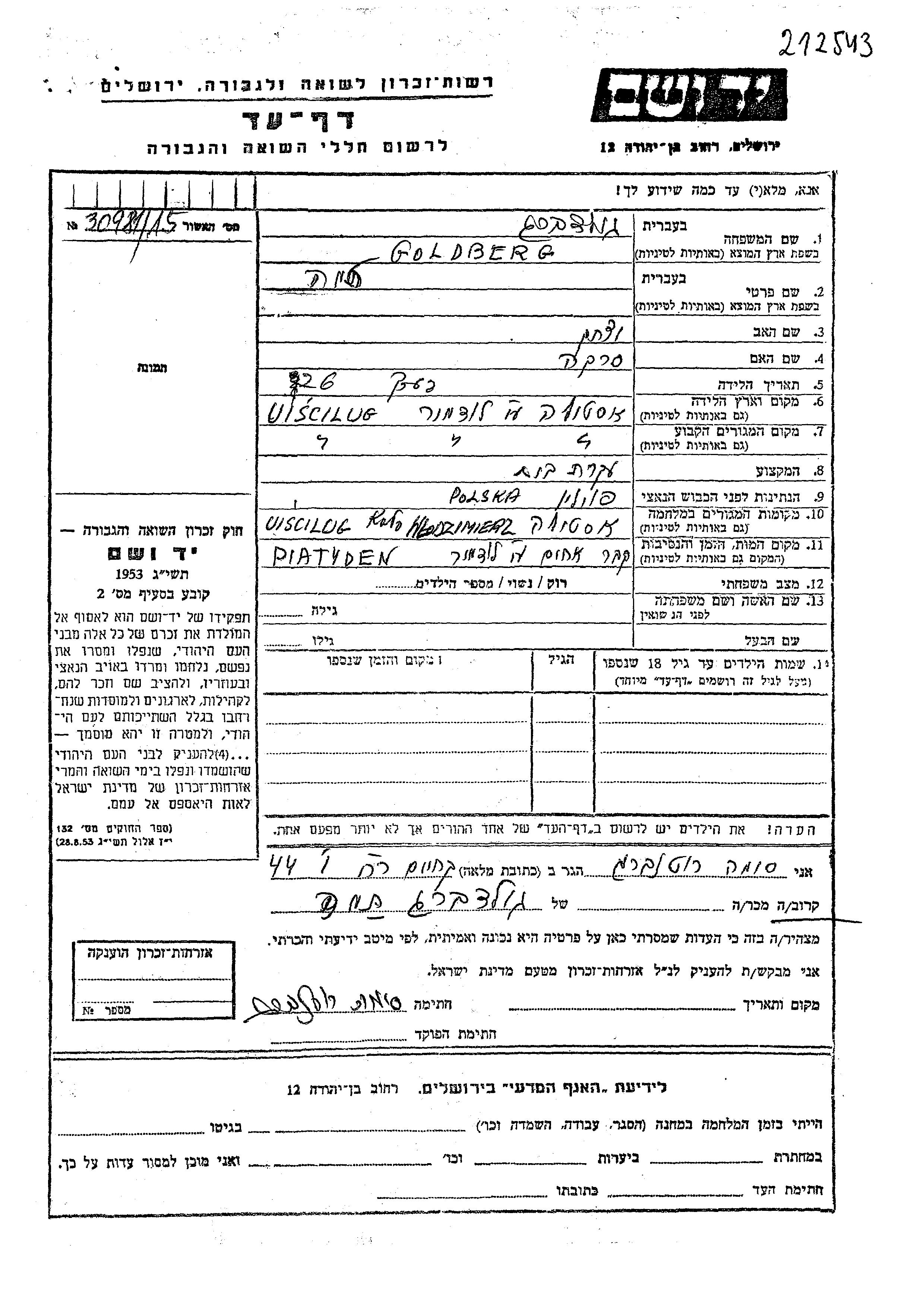 Tama Goldberg wurde in Uscilug, Polen geboren. Sie war die Tochter von Yitzkhak und Serka. Sie war Hausfrau. Vor dem Zweiten Weltkrieg lebte sie in Uscilug, Polen. Während des Krieges war sie in Uscilug, Polen.