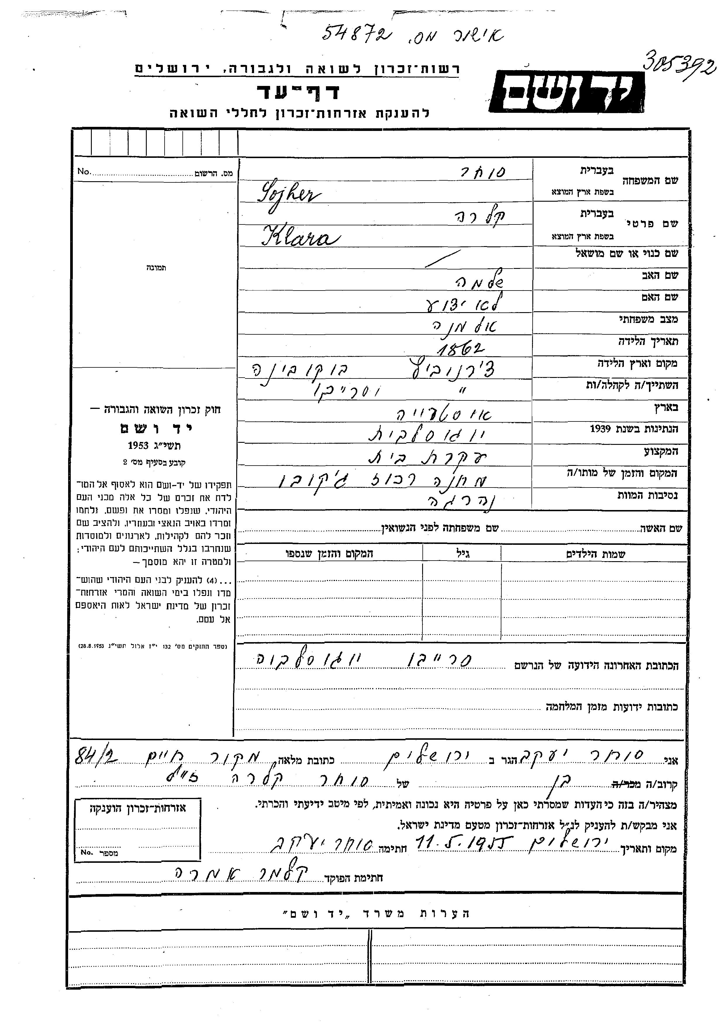 Klara wurde in der Schoah ermordet. Todesort: Djakovo, Jugoslawien.