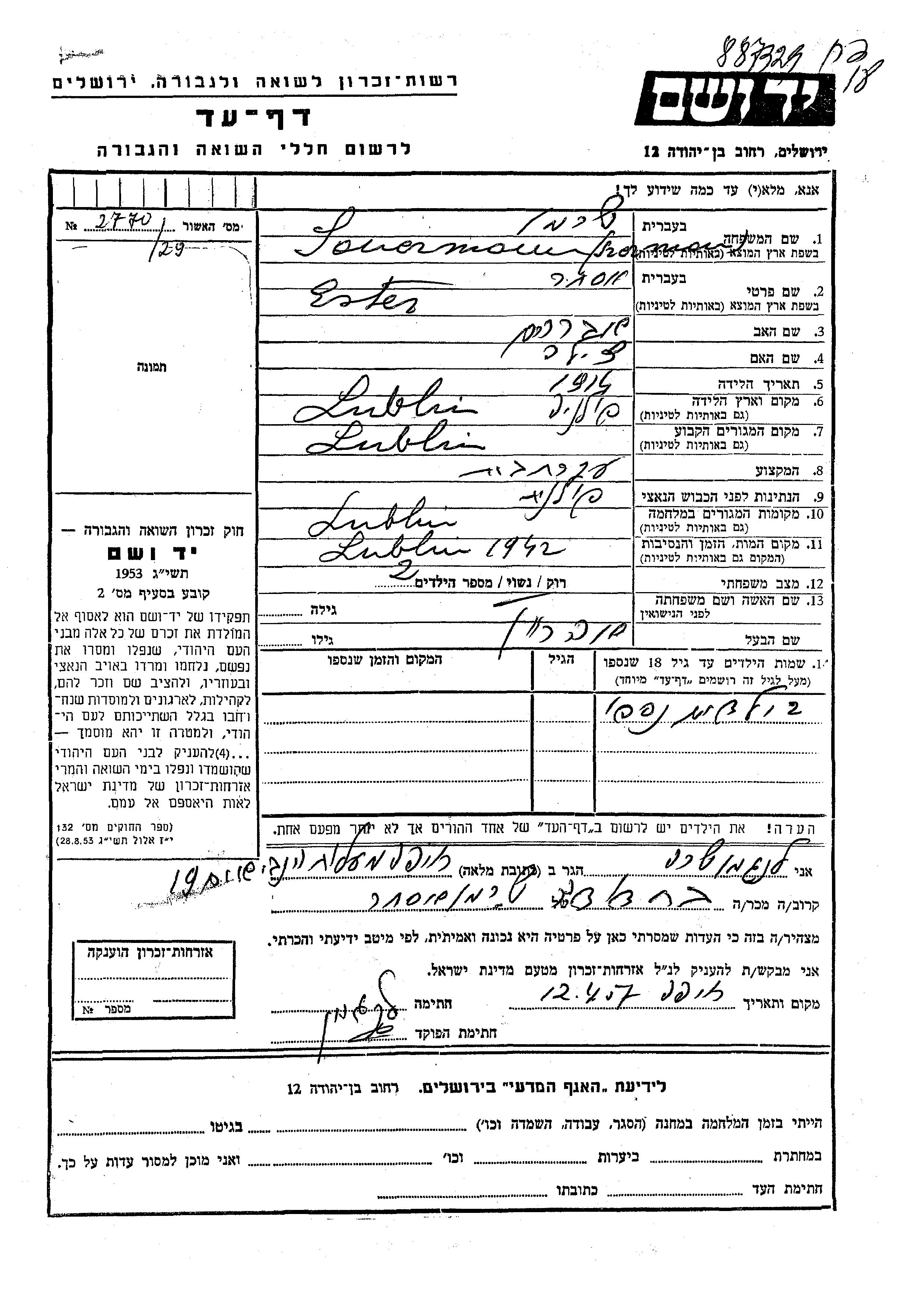 Ester wurde in der Schoah ermordet. Todesort: Lublin, Polen im Jahr 1942.