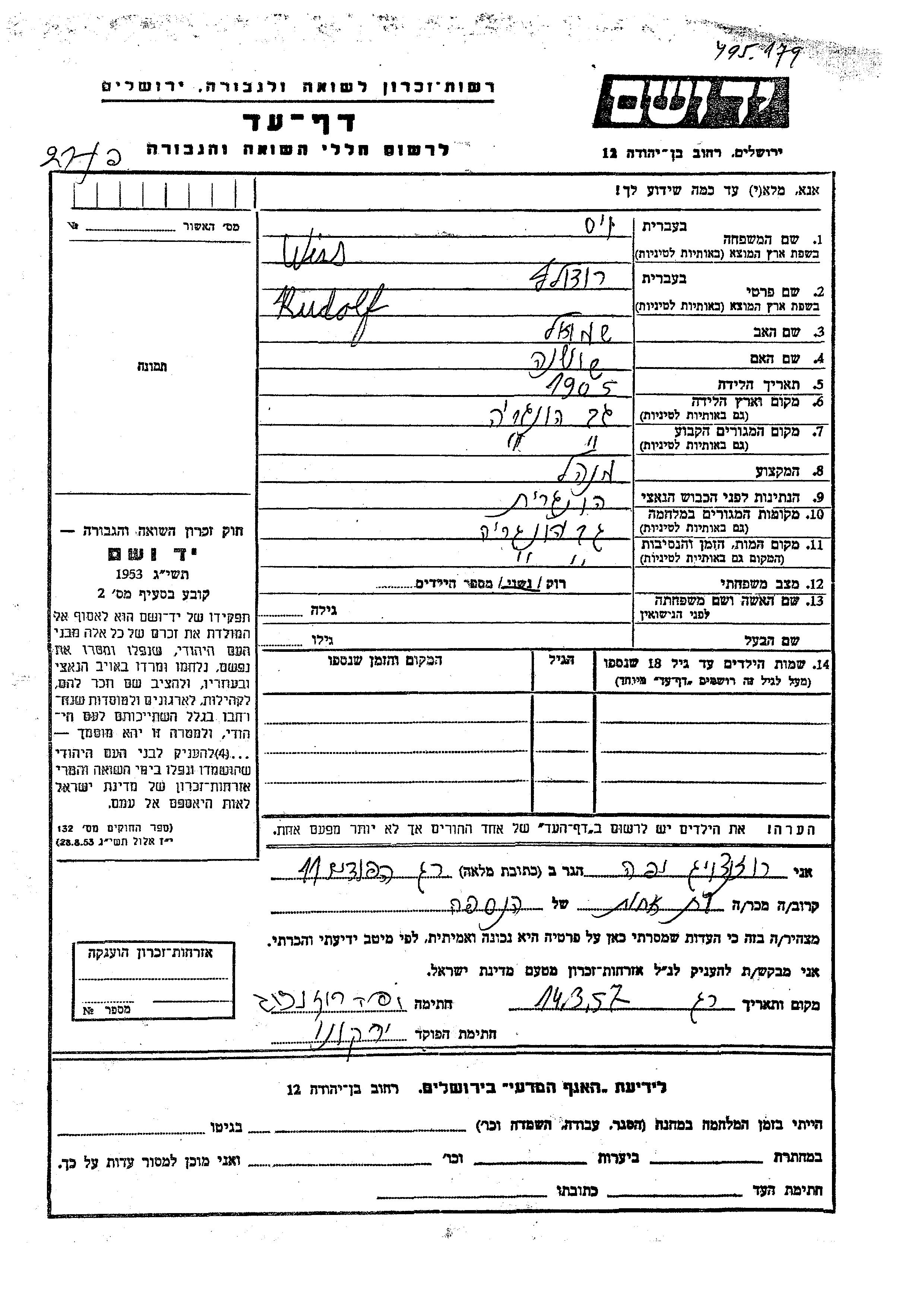 Rudolf wurde in der Schoah ermordet. Todesort: Gebe, Ungarn.