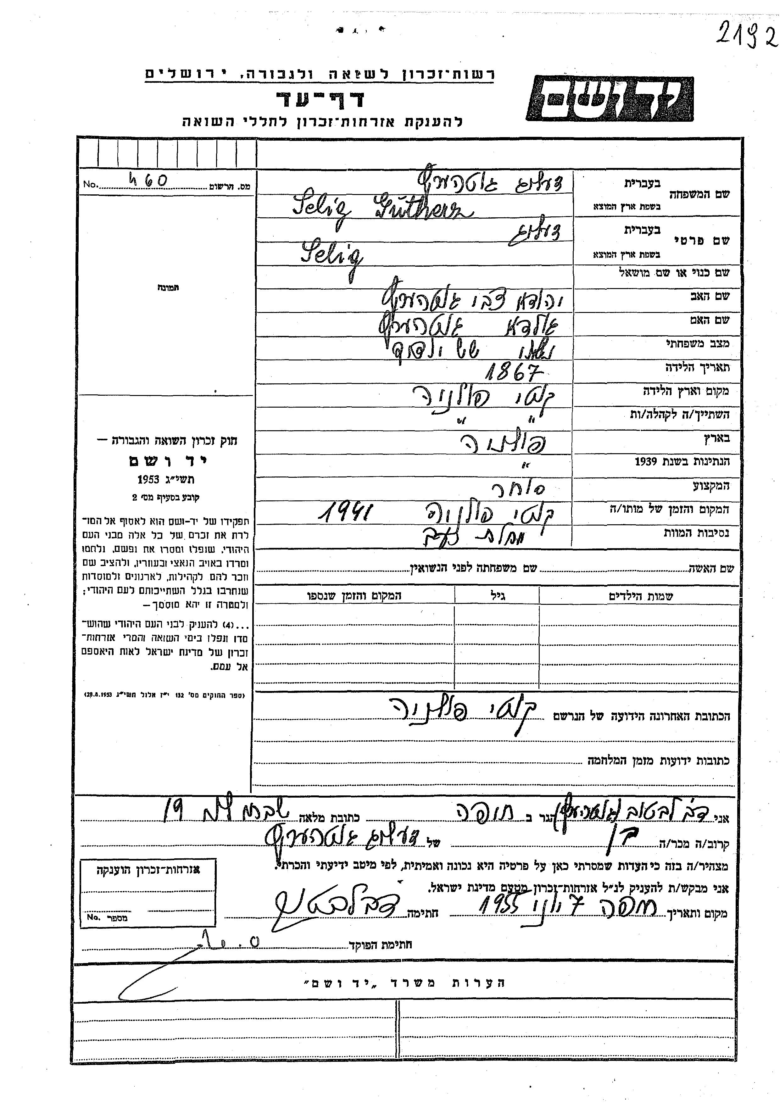 Zelig wurde in der Schoah ermordet. Todesort: Kuty, Polen im Jahr 1941.
