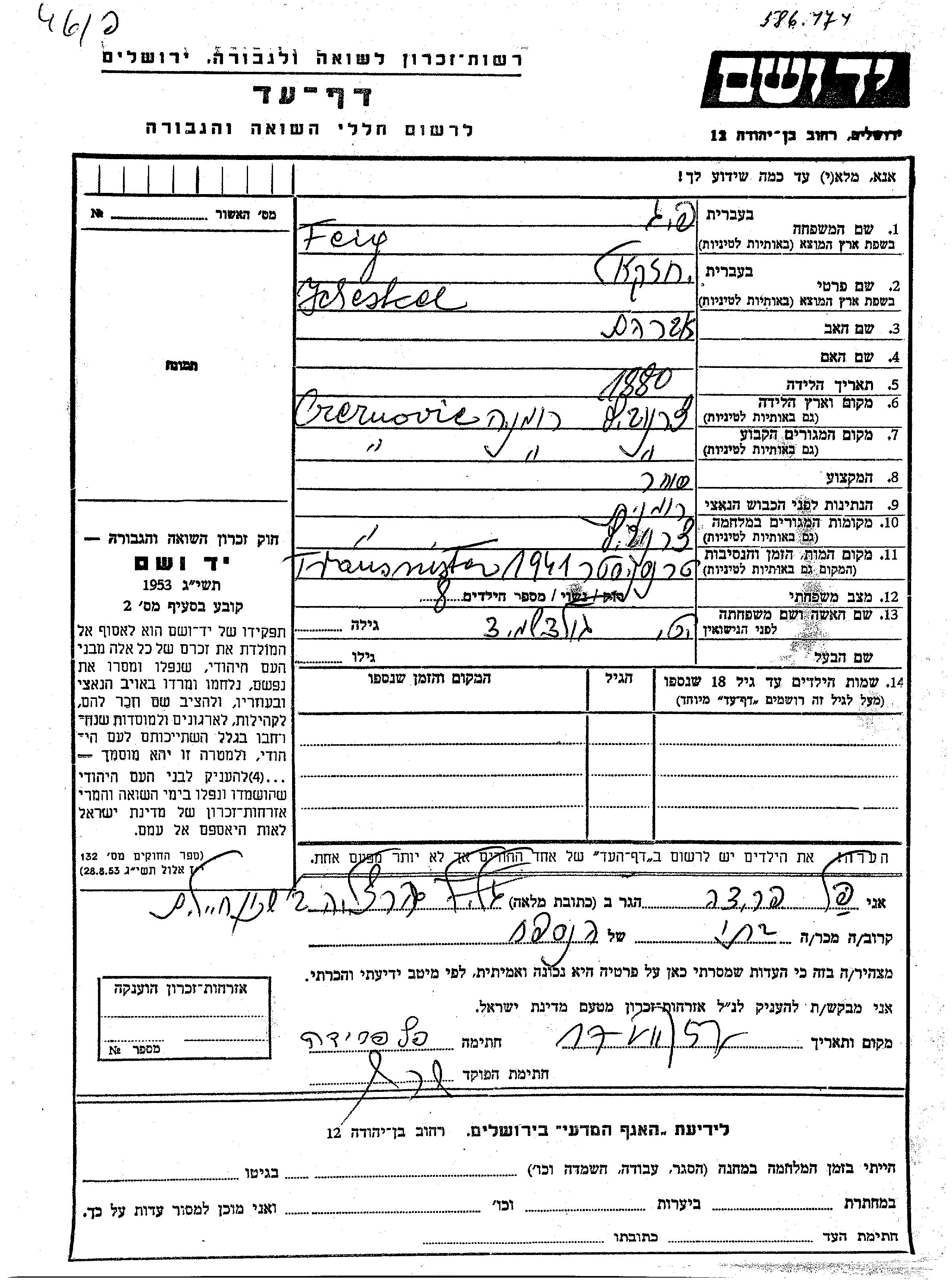 Ycheskel wurde in der Schoah ermordet. Todesort: Transnistria, Ukraine (UdSSR) im Jahr 1941.