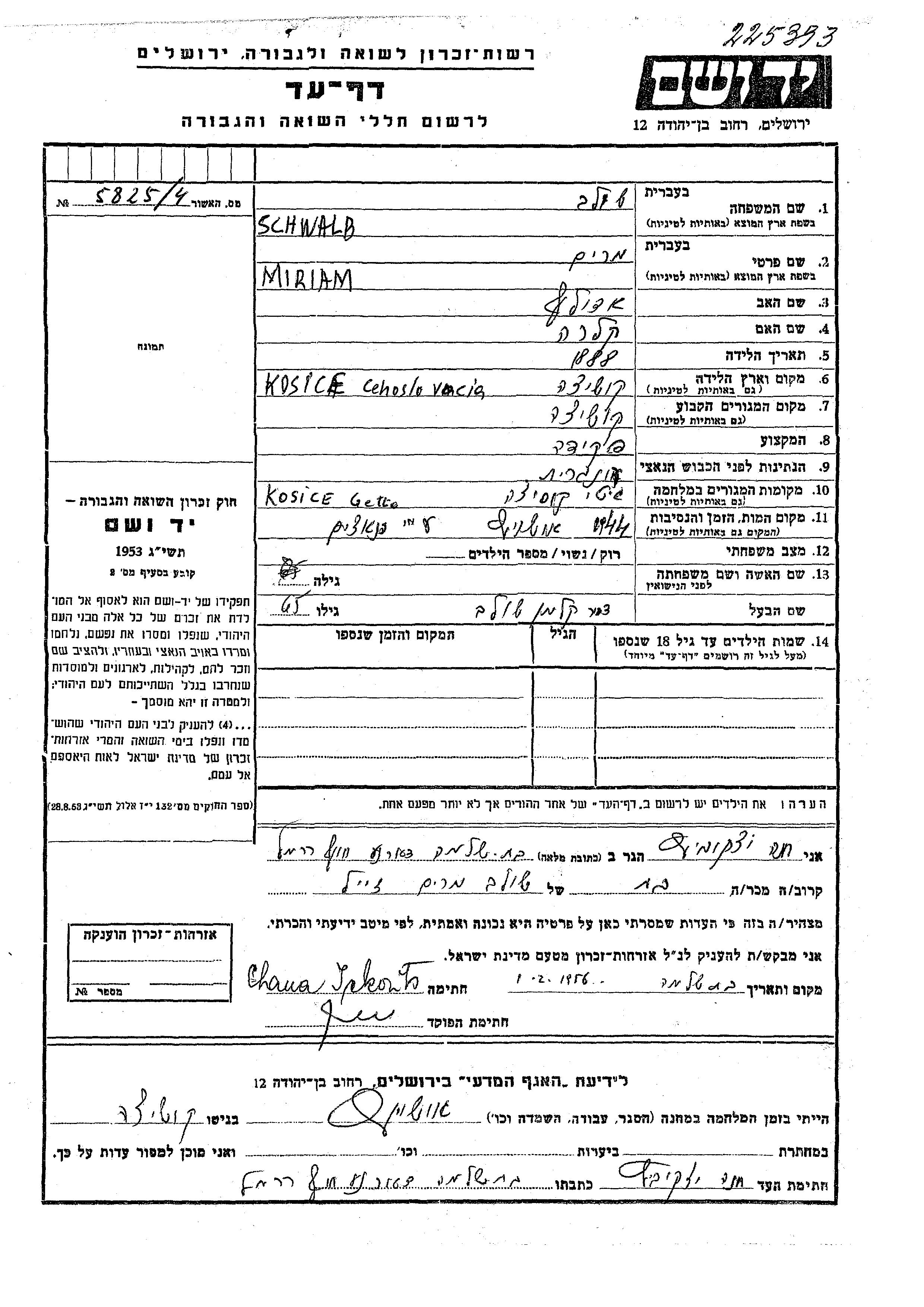 Schwalb Shulev Miriam 1888 Kosice, Tschechoslowakei Gedenkblatt