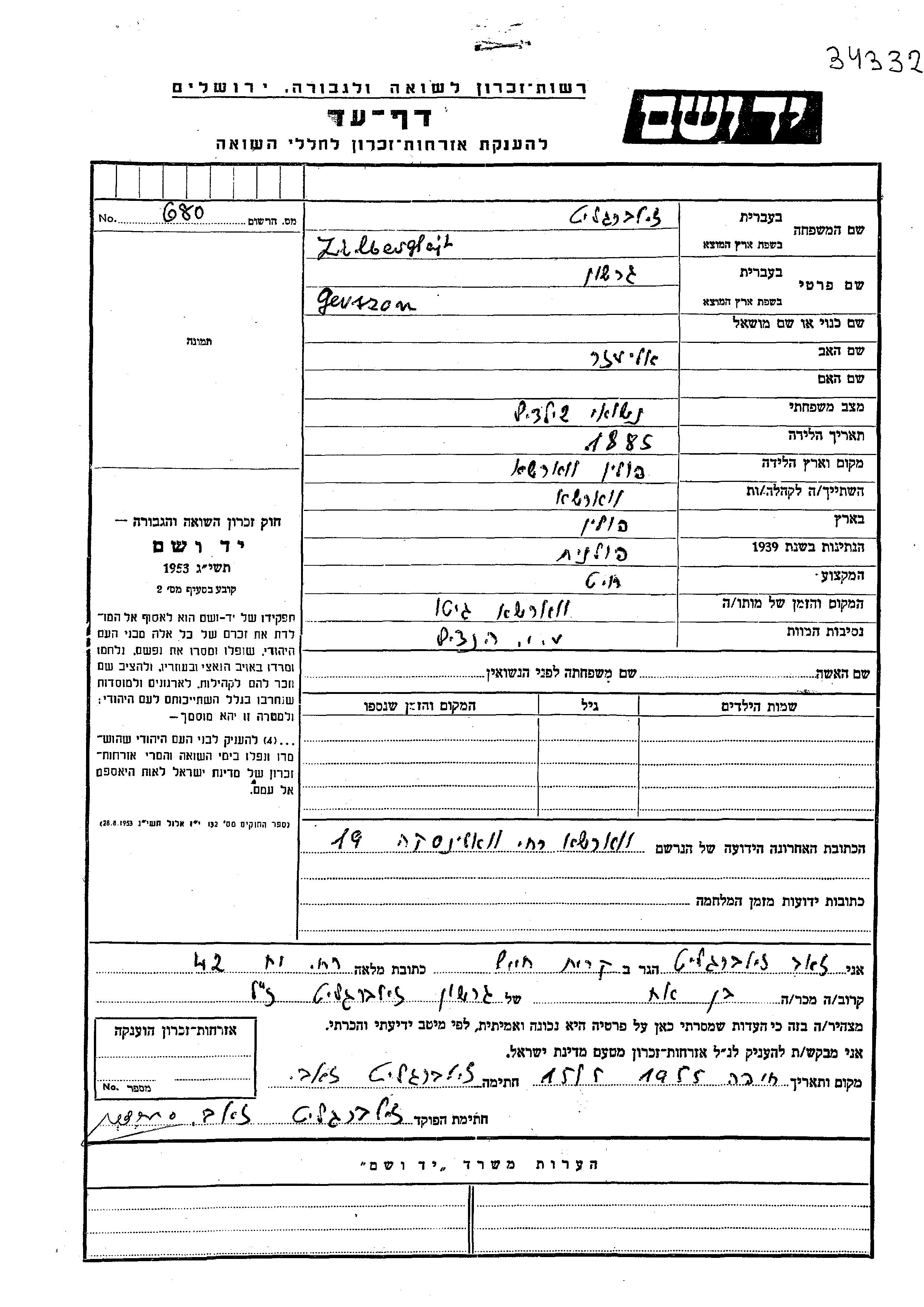 Gerszon Zilberglait wurde im Jahr 1885 in Warszawa, Polen geboren. Er war der Sohn von Eliezer. Er war Schneider und Verheiratet. Während des Krieges war er in Warszawa, Polen.