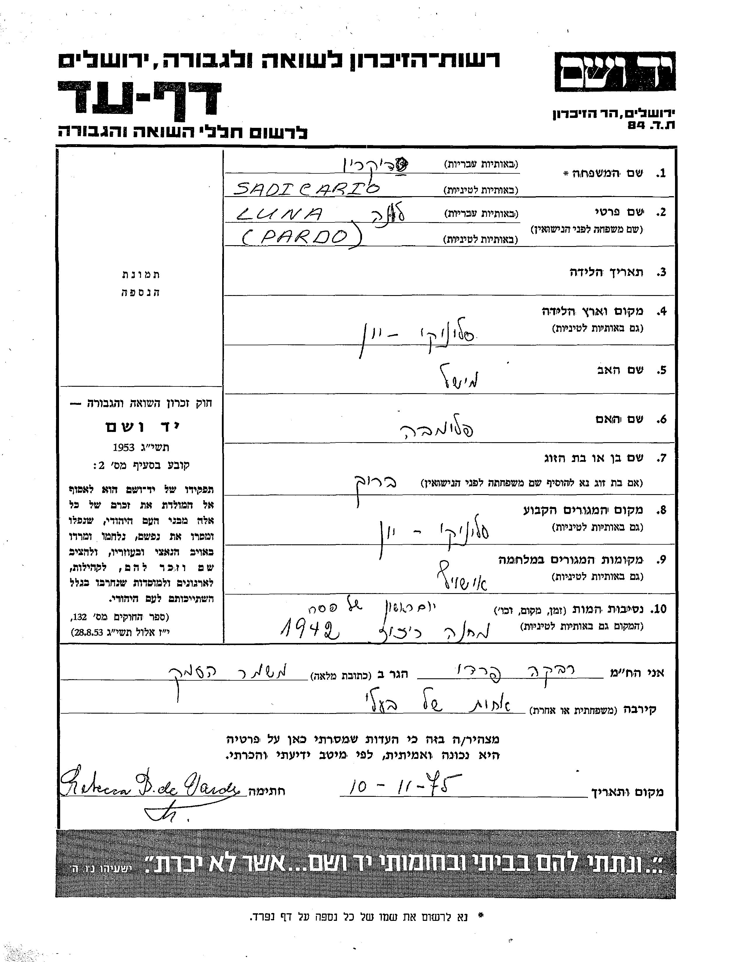 Luna wurde in der Schoah ermordet. Todesort: unbekannt im Jahr 1942.