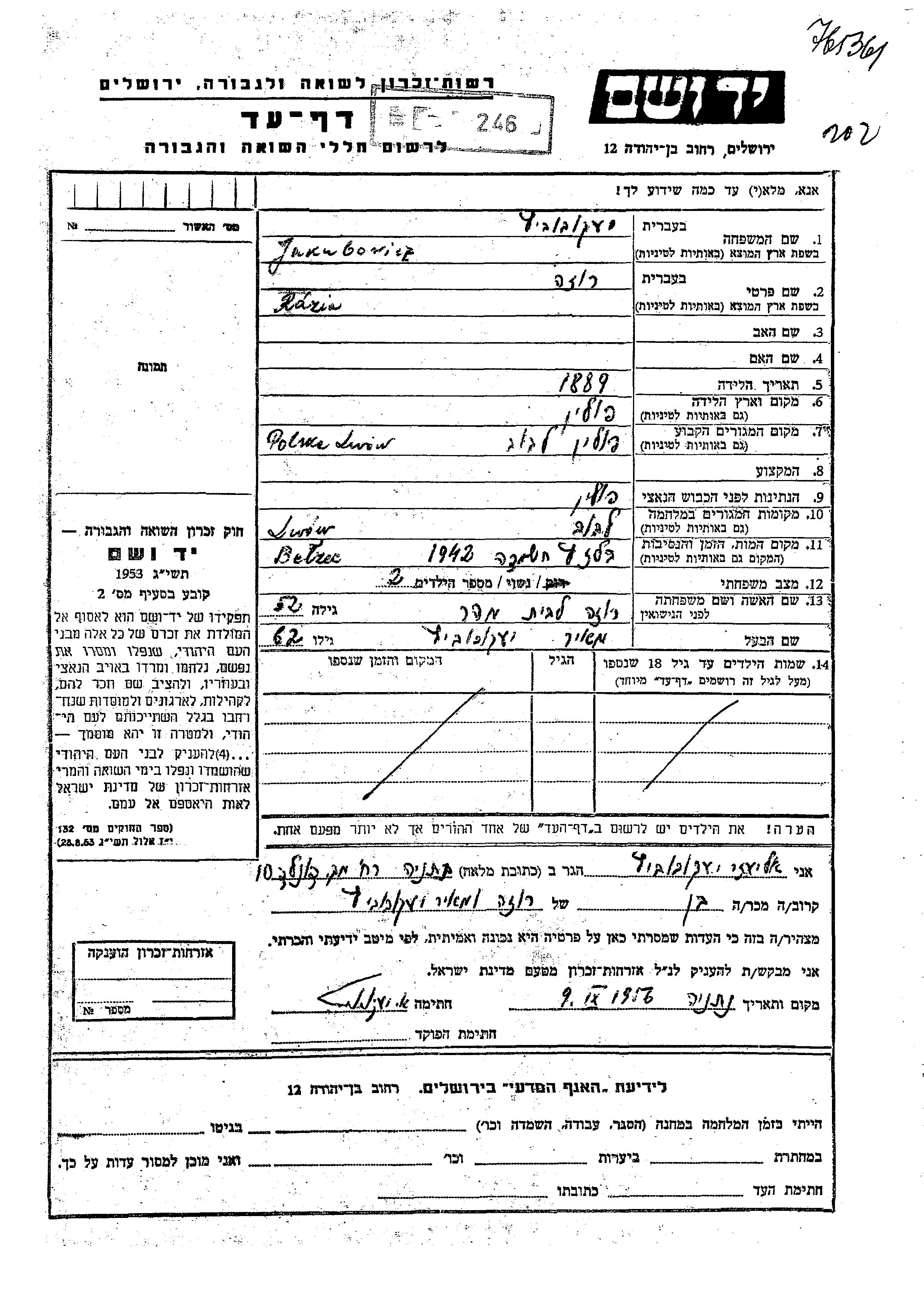 Razia Jakubowitz, geb. Mader wurde im Jahr 1889 in Polen geboren. Sie war mit Meir Verheiratet. Vor dem Zweiten Weltkrieg lebte sie in Lwow, Polen. Während des Krieges war sie in Lwow, Polen.
