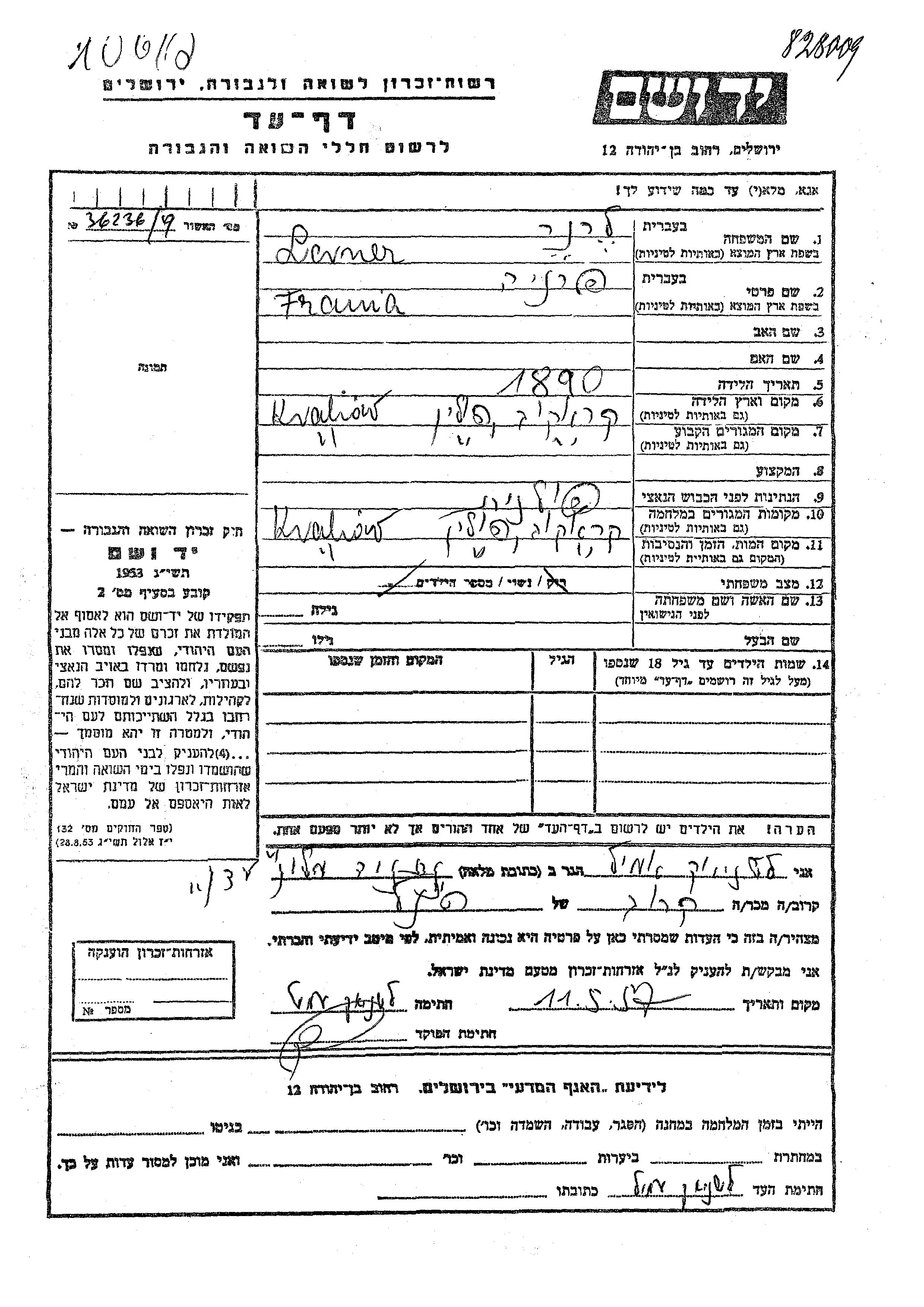Frania Lerner wurde im Jahr 1890 in Krakow, Polen geboren. Sie war Verheiratet. Vor dem Zweiten Weltkrieg lebte sie in Krakow, Polen. Während des Krieges war sie in Krakow, Polen.