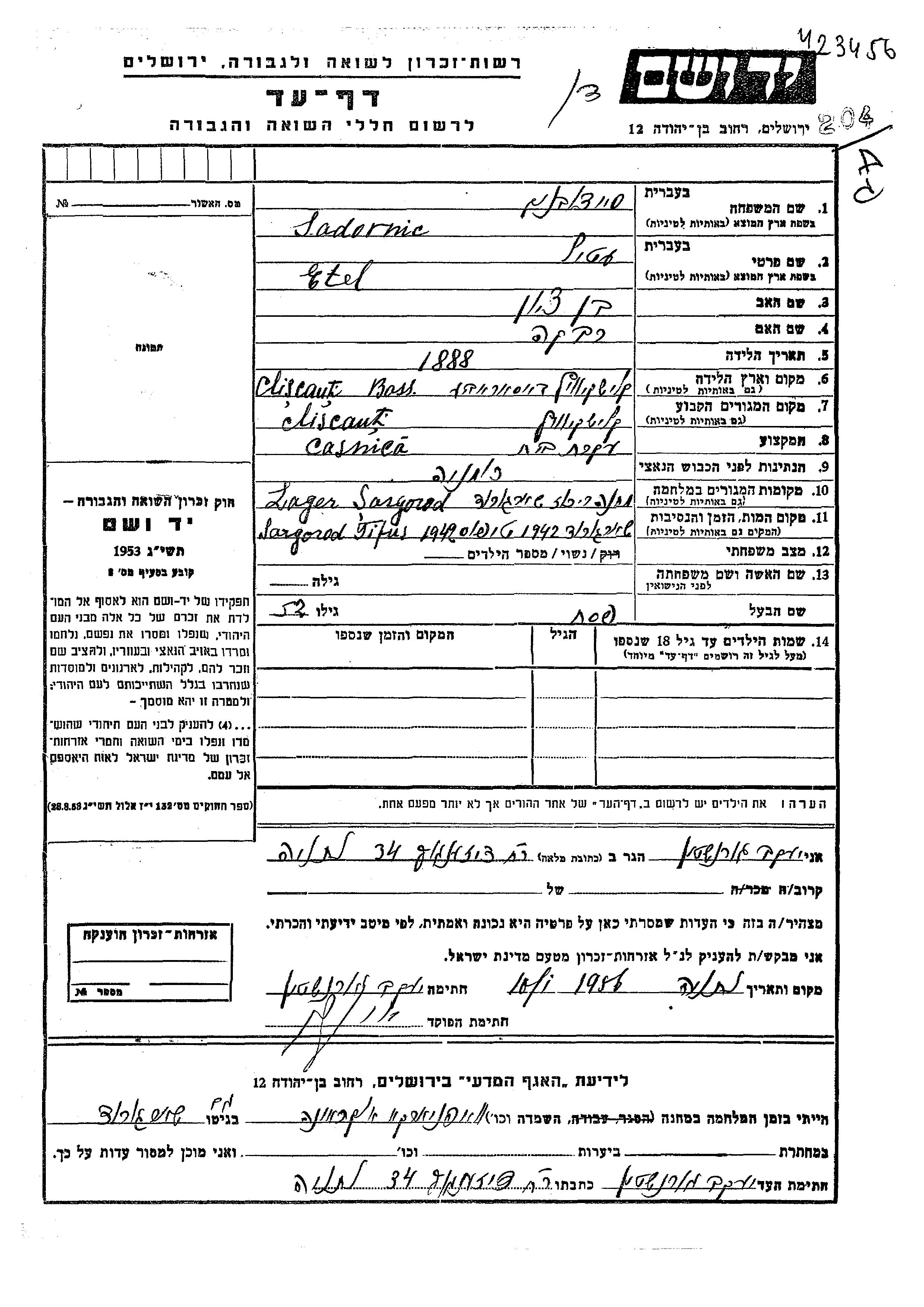Etel Sadovnic wurde im Jahr 1888 in Cliscauti, Rumänien geboren. Sie war die Tochter von Bentzion und Rivka. Sie war Hausfrau und mit Pesakh Verheiratet. Vor dem Zweiten Weltkrieg lebte sie in Cliscauti, Rumänien. Während des Krieges war sie in Shargorod, Ukraine (UdSSR).