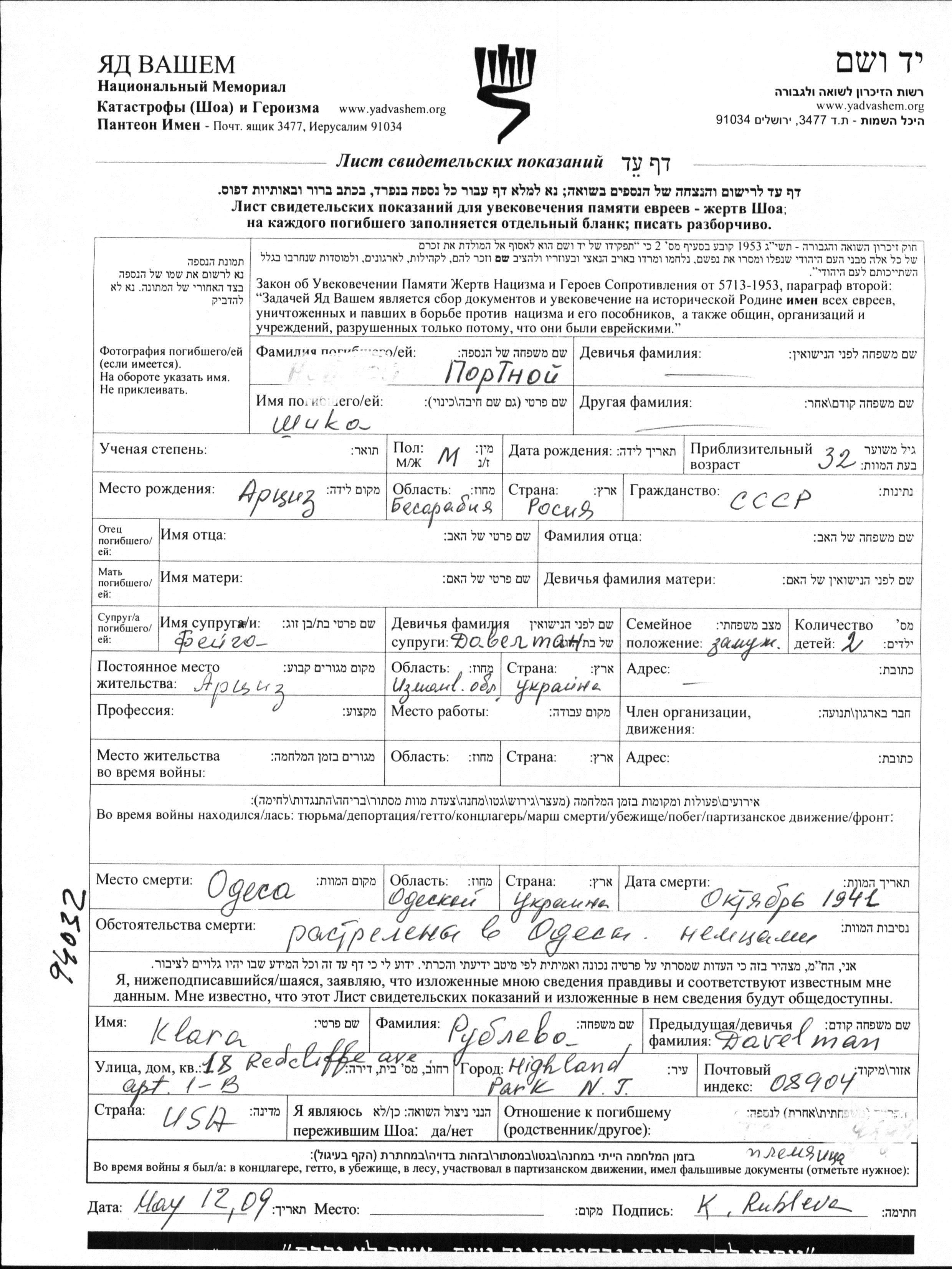 Shika wurde in der Schoah ermordet. Todesort: Odessa, Ukraine (UdSSR) im Jahr 10/1941.