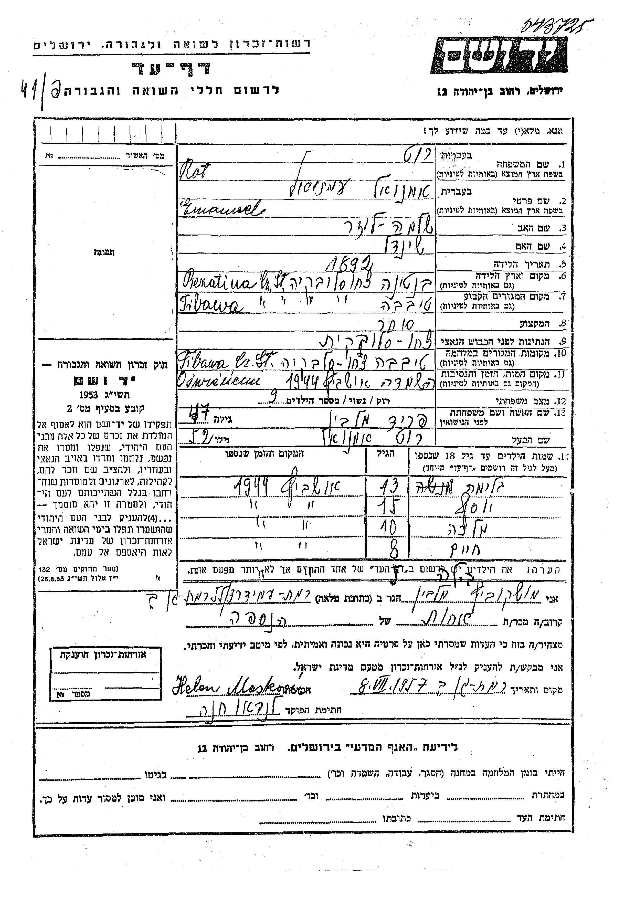 Emanuel wurde in der Schoah ermordet. Todesort: Auschwitz, Polen im Jahr 1944.