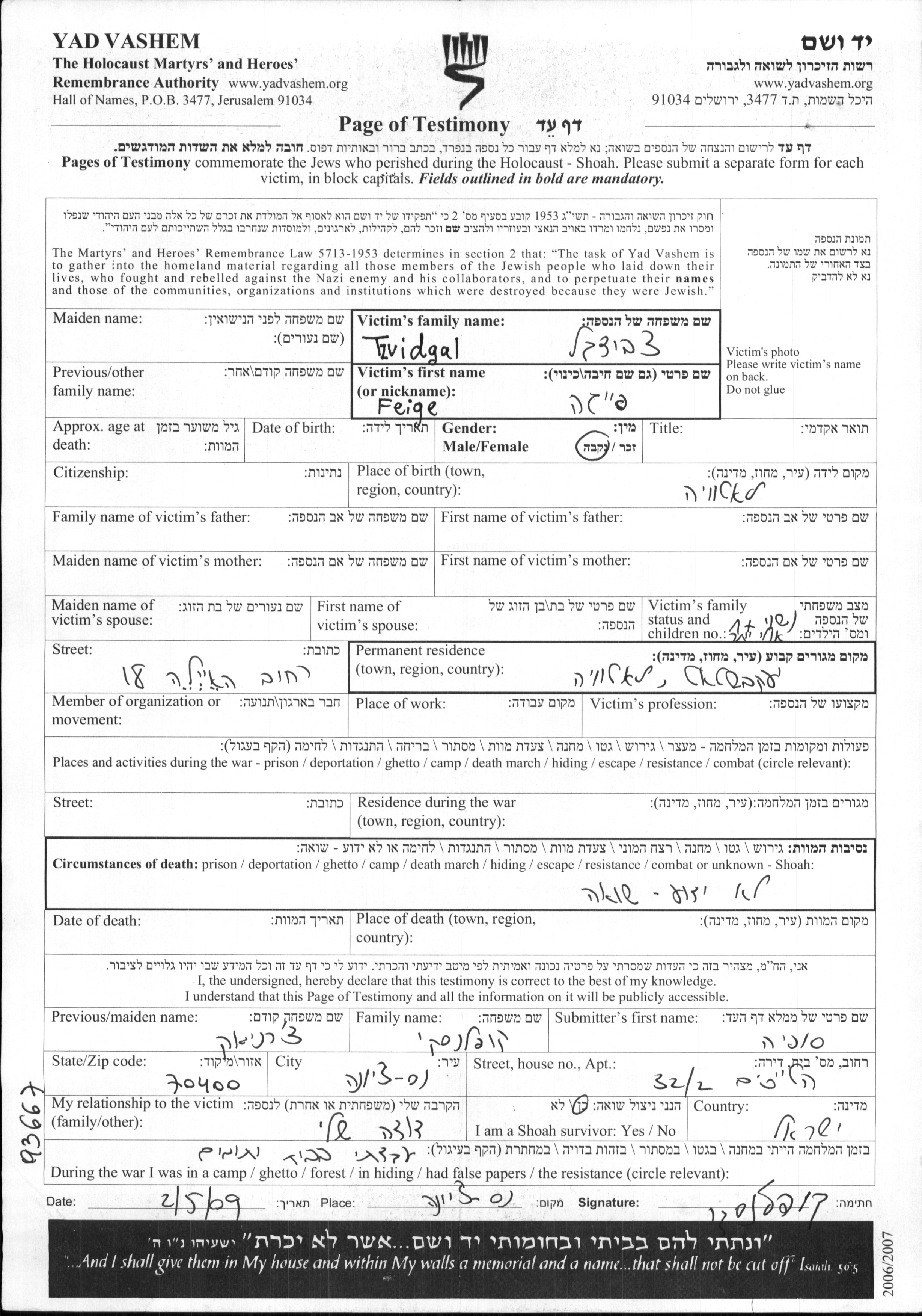Feige Tzvidgal wurde in Lettland geboren. Vor dem Zweiten Weltkrieg lebte sie in Jakobstadt, Lettland. Während des Krieges war sie in Jakobstadt, Lettland.