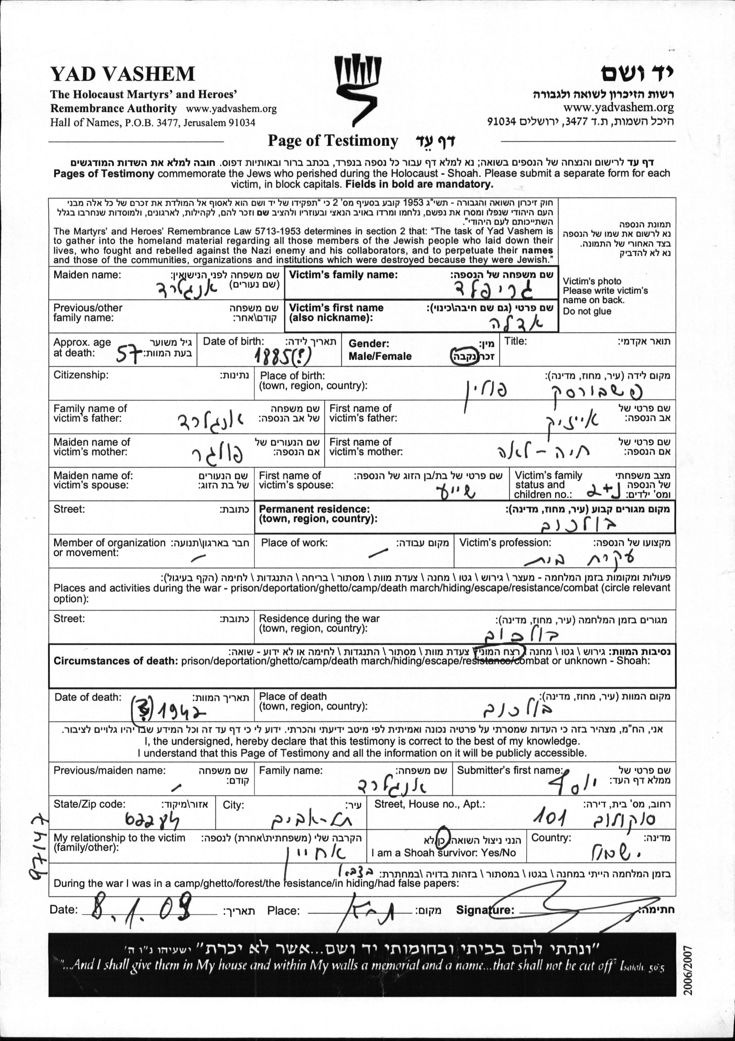 Adela wurde in der Schoah ermordet. Todesort: Bolechow, Polen im Jahr 1942.